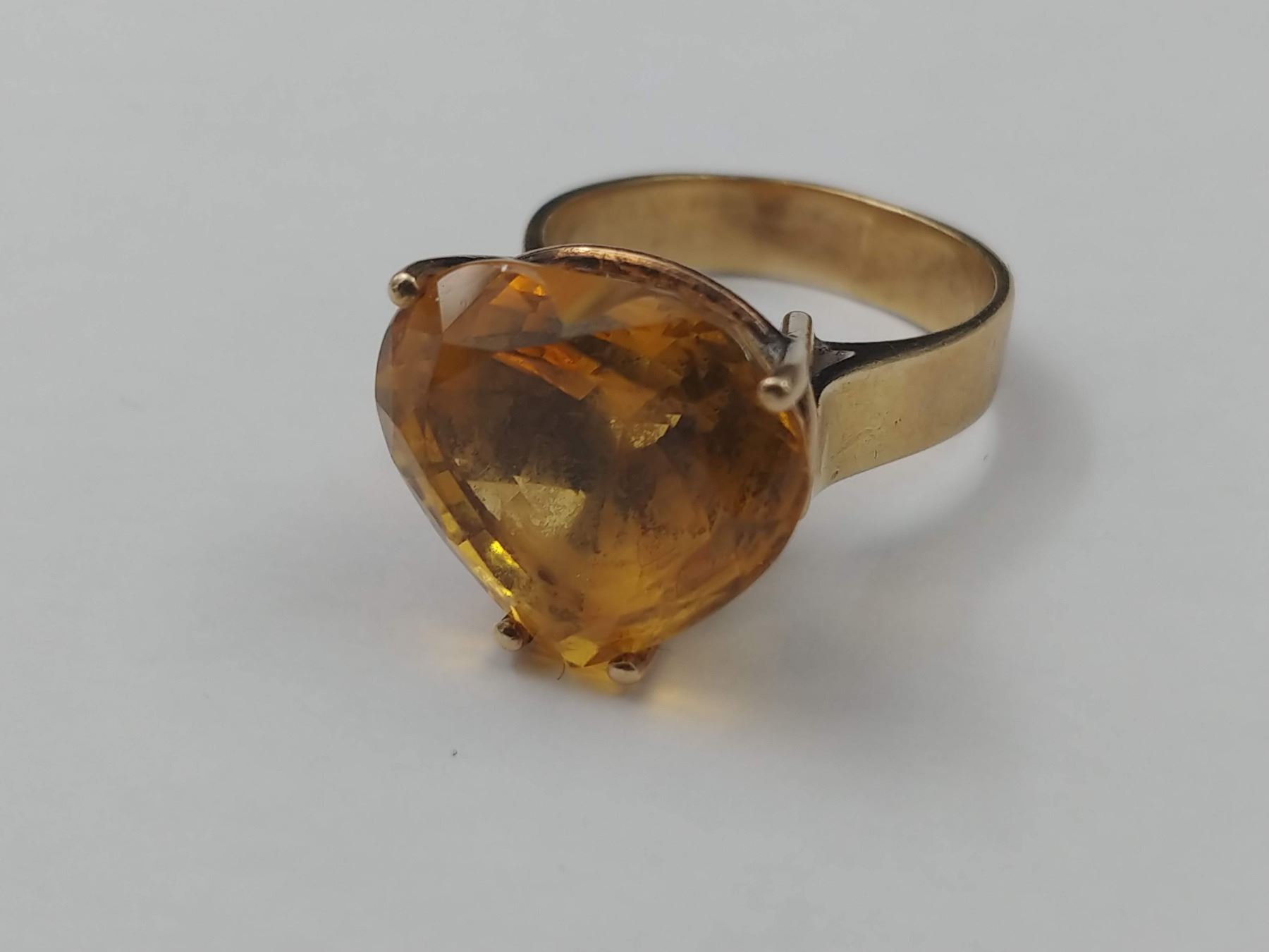 14K YELLOW GOLD RING SET WITH HEART SHAPED CITRINE