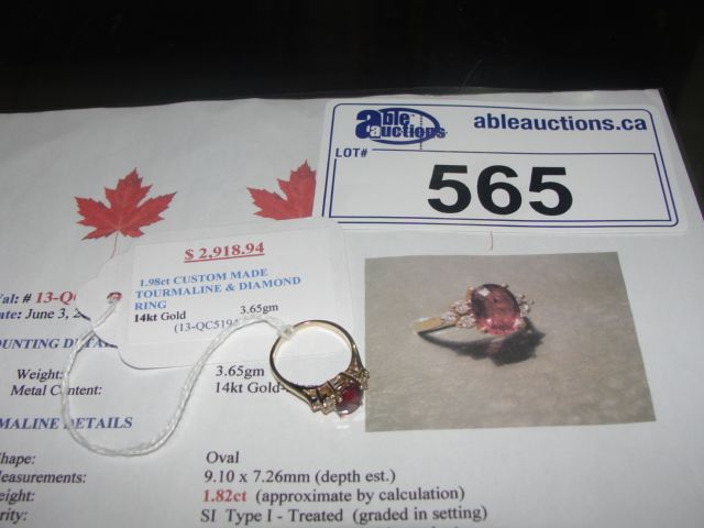 14KT GOLD 1.98CARAT CUSTOM MADE TOURMALITE AND DIAMOND RING APPRAISED VALUE $2918.94