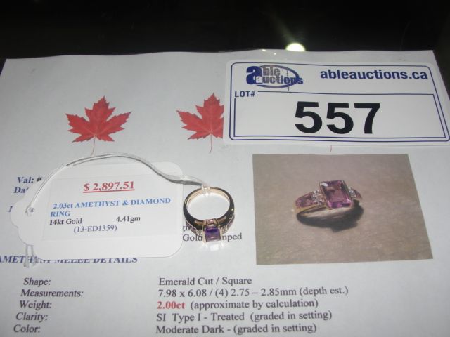 14KT GOLD 2.03CARAT AMETHYST AND DIAMOND RING APPRAISED VALUE $2897.51