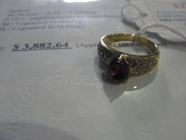 14KT GOLD 2.14CARAT CUSTOM MADE AMETHYST AND DIAMOND RING APPRAISED VALUE $3882.64