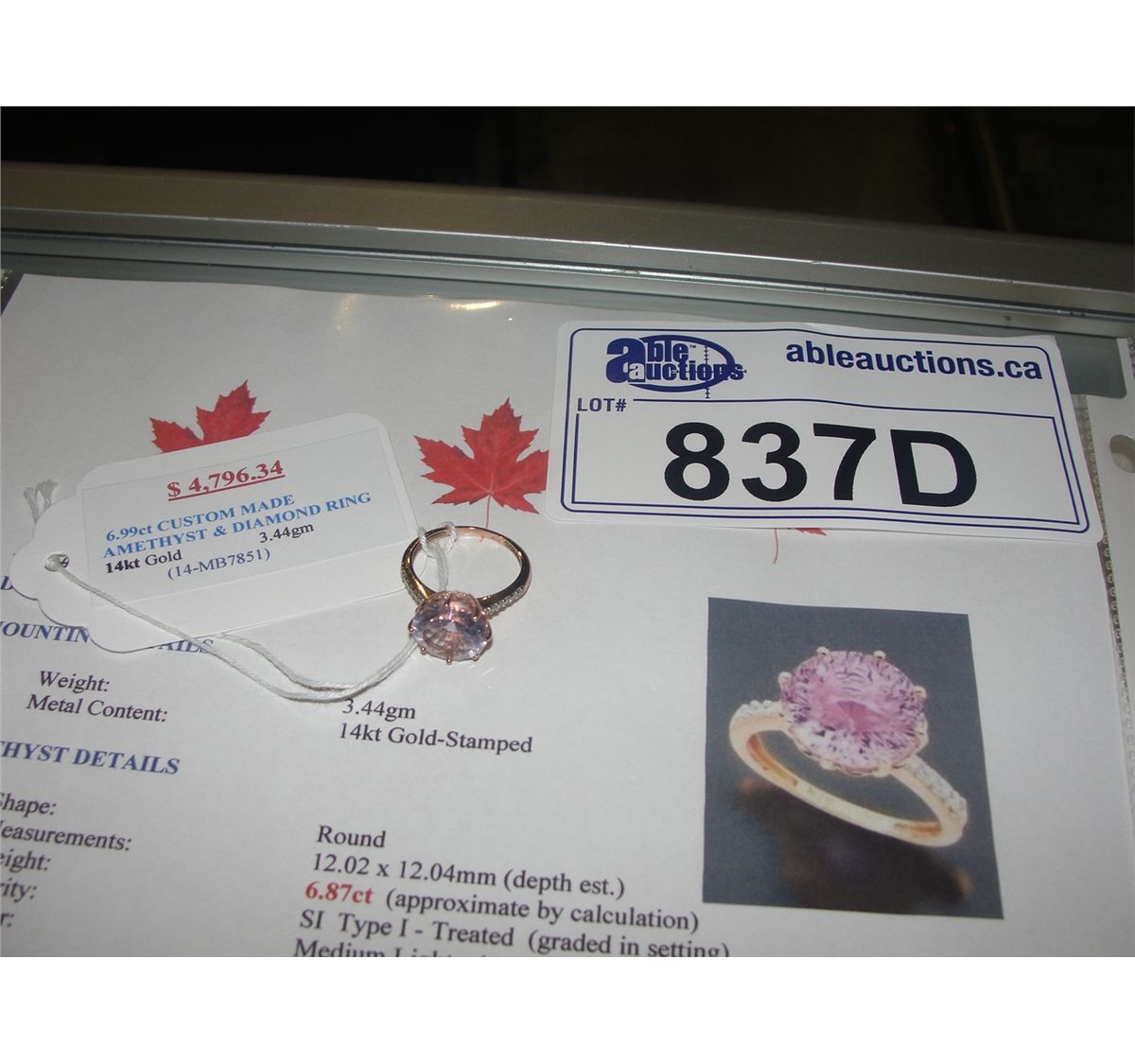 14KT GOLD 6.99CARAT CUSTOM MADE AMETHYST AND DIAMOND RING APPRAISED VALUE $4796.34