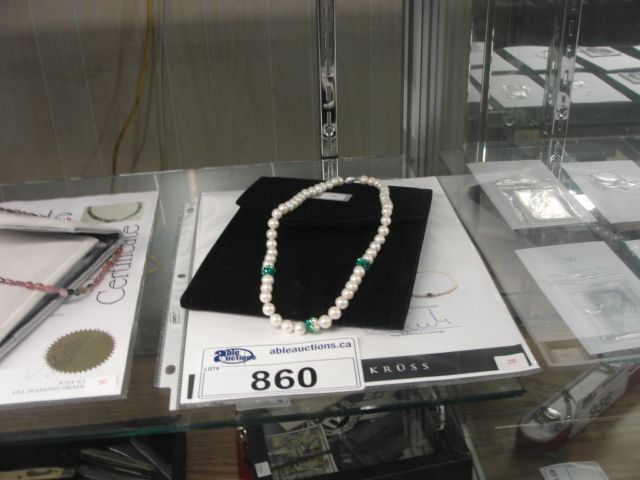 14KT GOLD CLASP PEARL AND SWAROVSKI NECKLACE - APPRAISED VALUE $1333