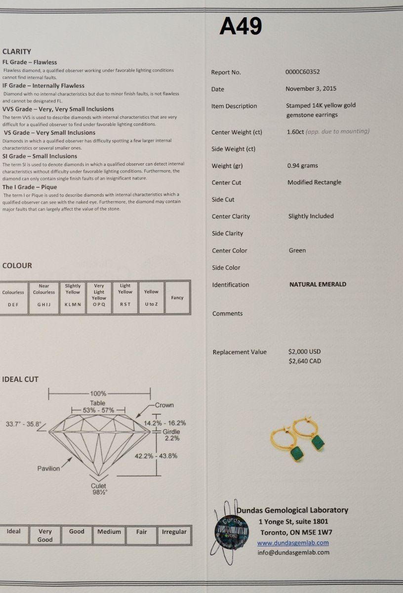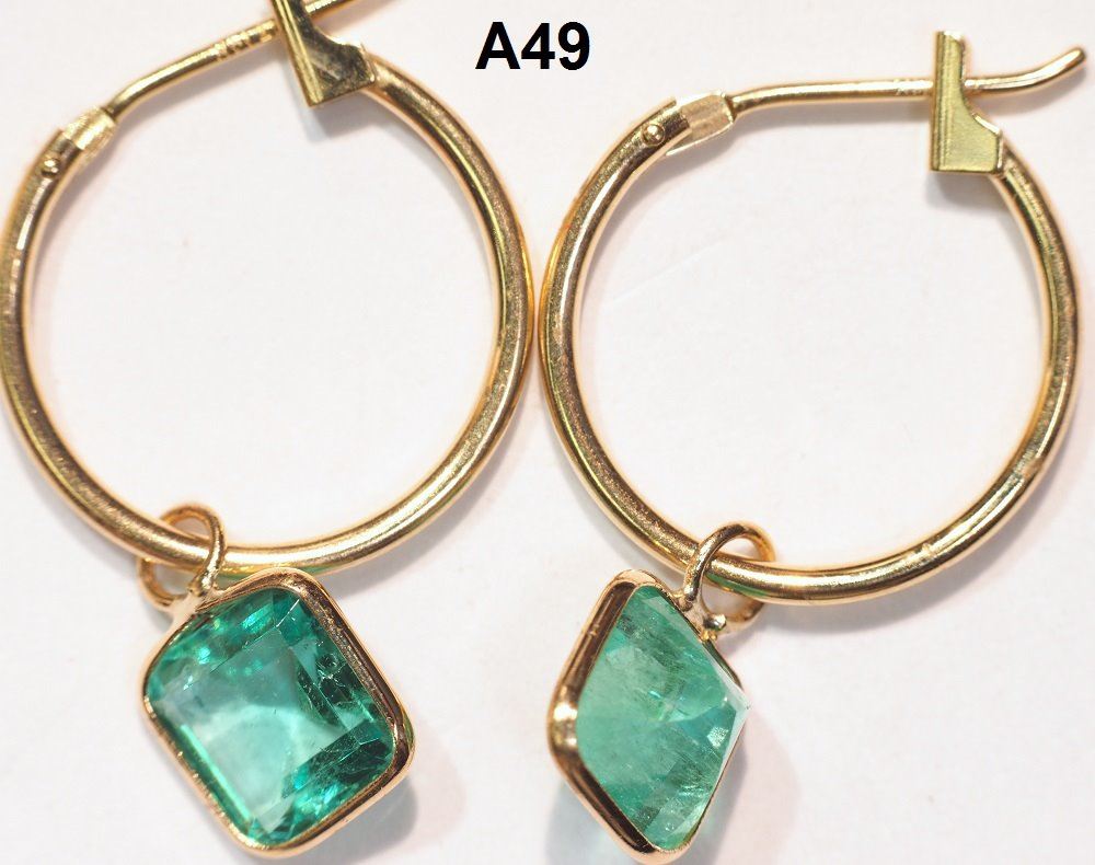 14KT GOLD EMERALD 1.60CT HOOP EARRINGS. REPLACEMENT VALUE: $2640.00
