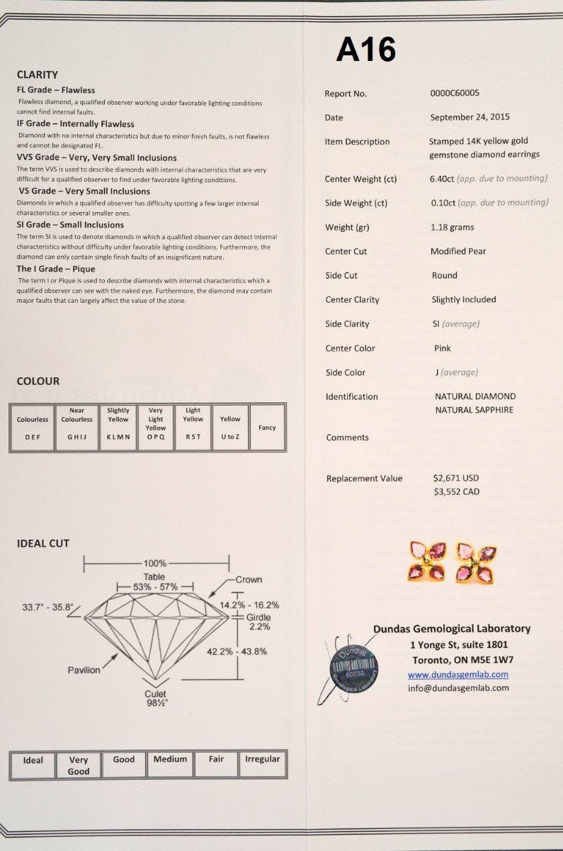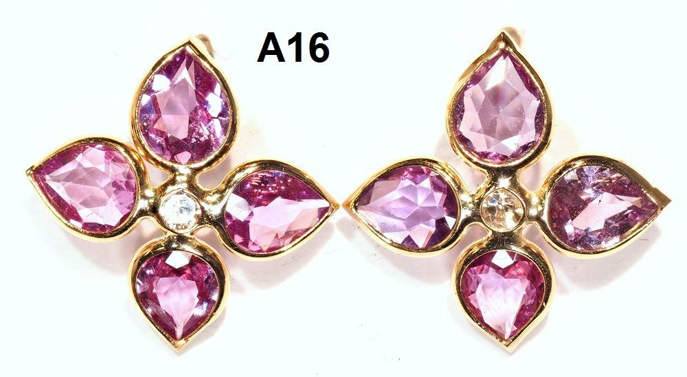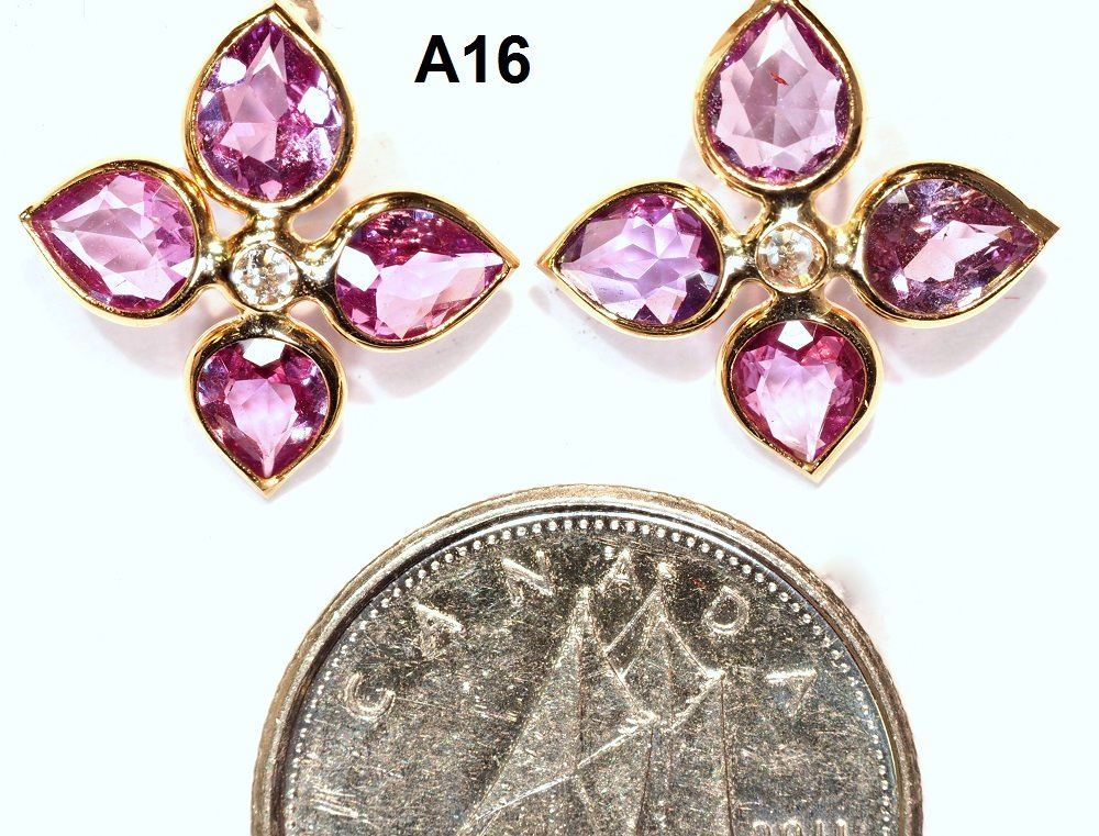 14KT GOLD PINK SAPPHIRE 6.4CT AND DIAMOND 0.10CT FLOWER EARRINGS. REPLACEMENT VALUE: $3552.00