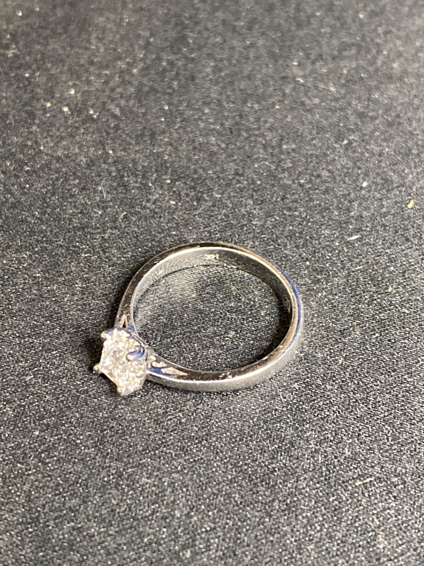 14KT WHITE GOLD AND DIAMOND RING SIZE 7 *BENT AT TOP*