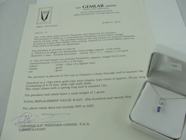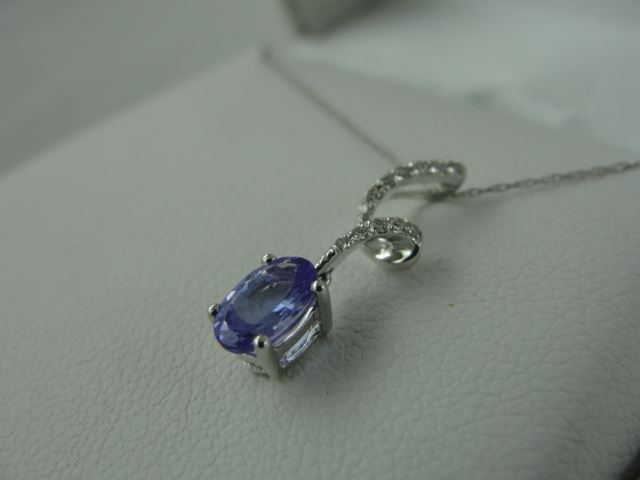 14KT WHITE GOLD NATURAL TANZANITE AND DIAMOND SET PENDANT WITH 12 DIAMONDS, APPROX 0.06CARAT AND ONE TANZANITE, APPROX 0.52CARAT REPLACEMENT VALUE $625
