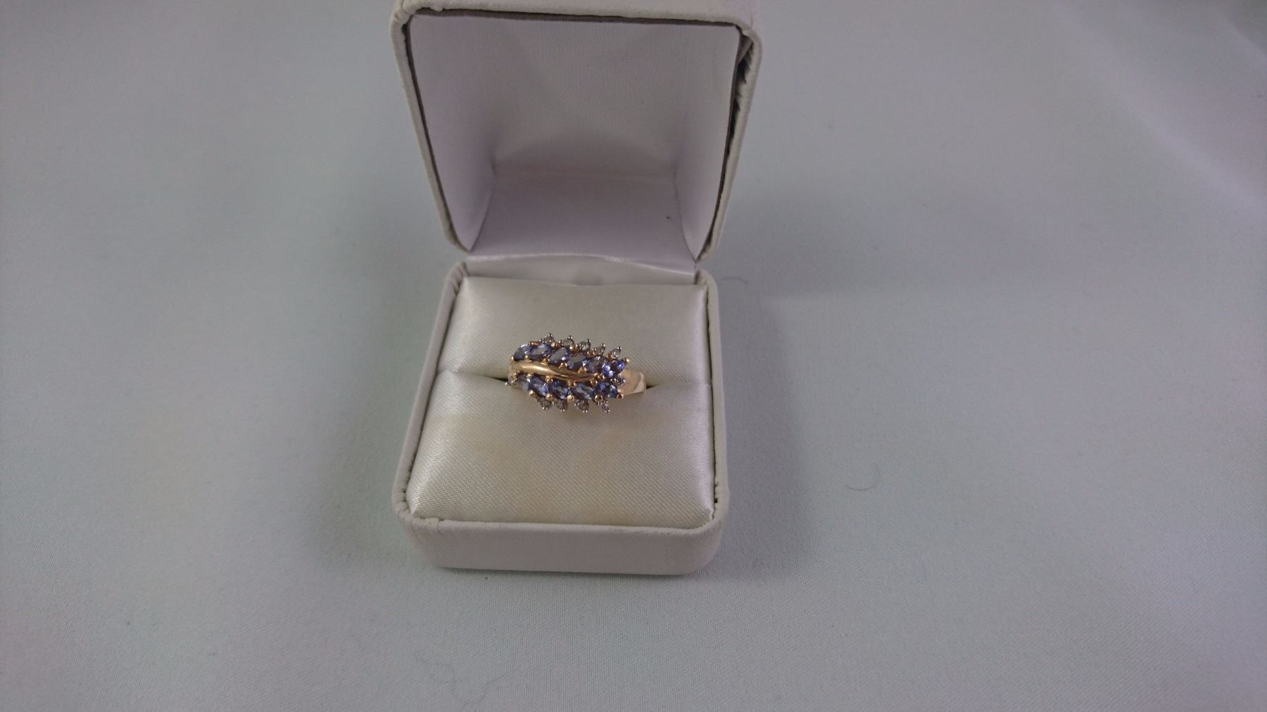 14KT YELLOW GOLD LADIES RING SET WITH ELEVEN MARQUISE PALE MAUVE TANZANITE + 11 BCD TW 4.99 REPLACEMENT VALUE $495