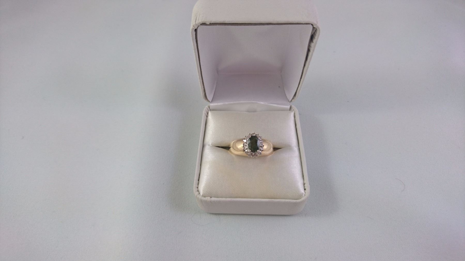 14KT YELLOW GOLD LADIES RING SET WITH ONE OVAL CUT GREEN STONE + 16 SCD TW 4.2 GRAM REPLACEMENT VALUE $695