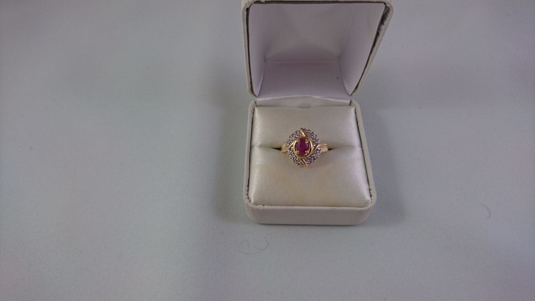 14KT YELLOW GOLD LADIES RING SET WITH ONE OVAL CUT RUBY + 36 SCD TW 3.6 GRAM REPLACEMENT VALUE $625