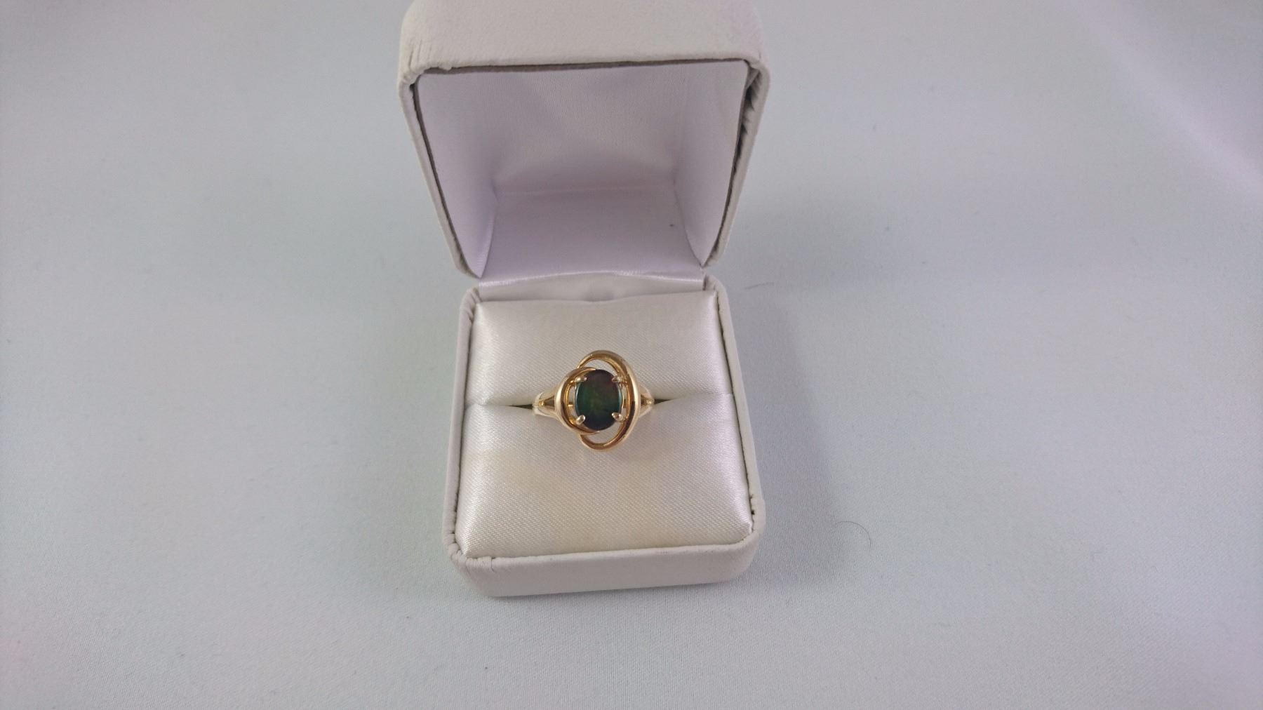 14KT YELLOW GOLD LADIES RING SET WITH ONE OVAL TRIPLET AMMONITE SHELL TW 3.8 GRAM REPLACEMENT VALUE $395