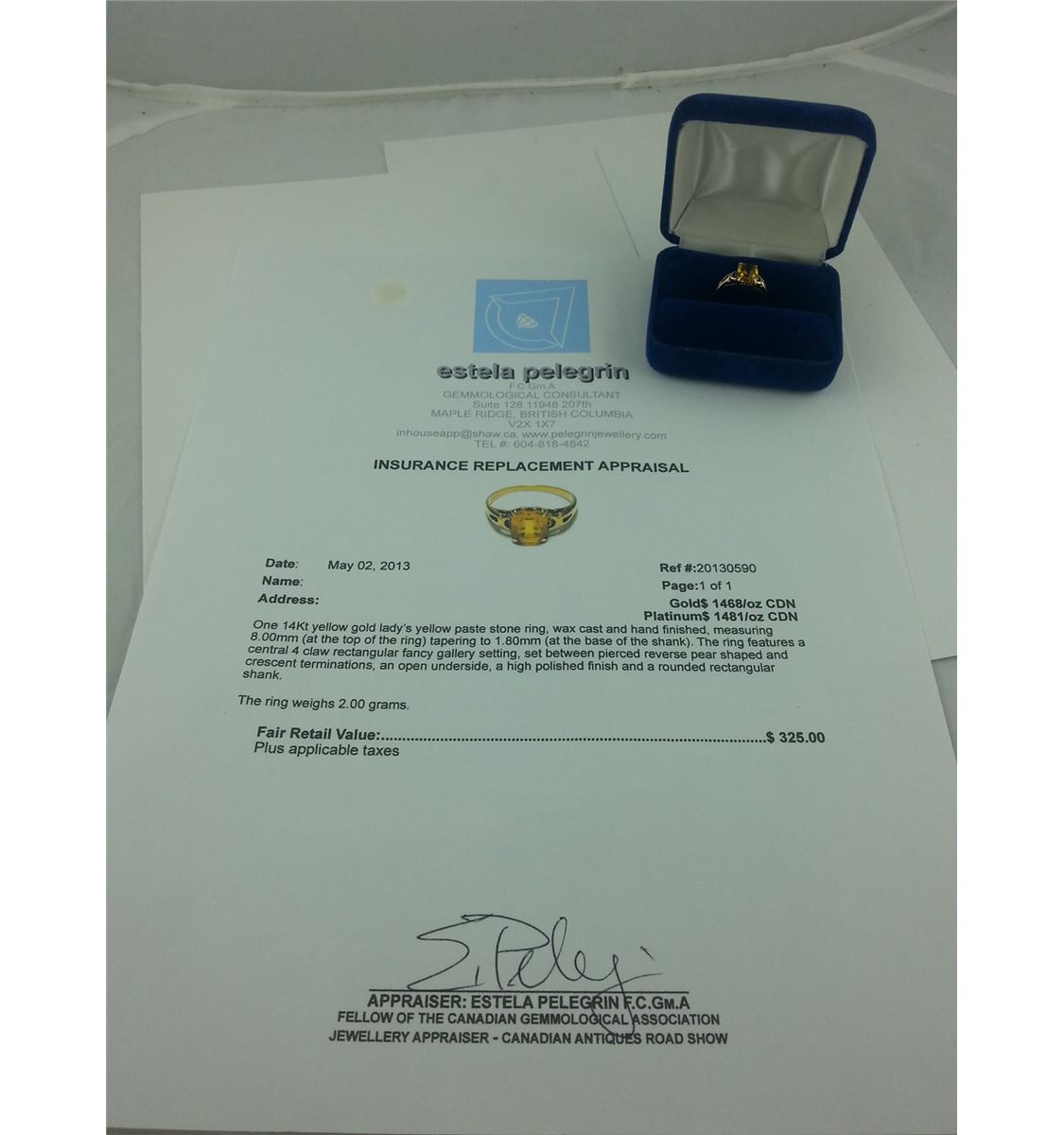 14KT YELLOW GOLD LADY'S YELLOW PASTE STONE RING RETAIL VALUE $325
