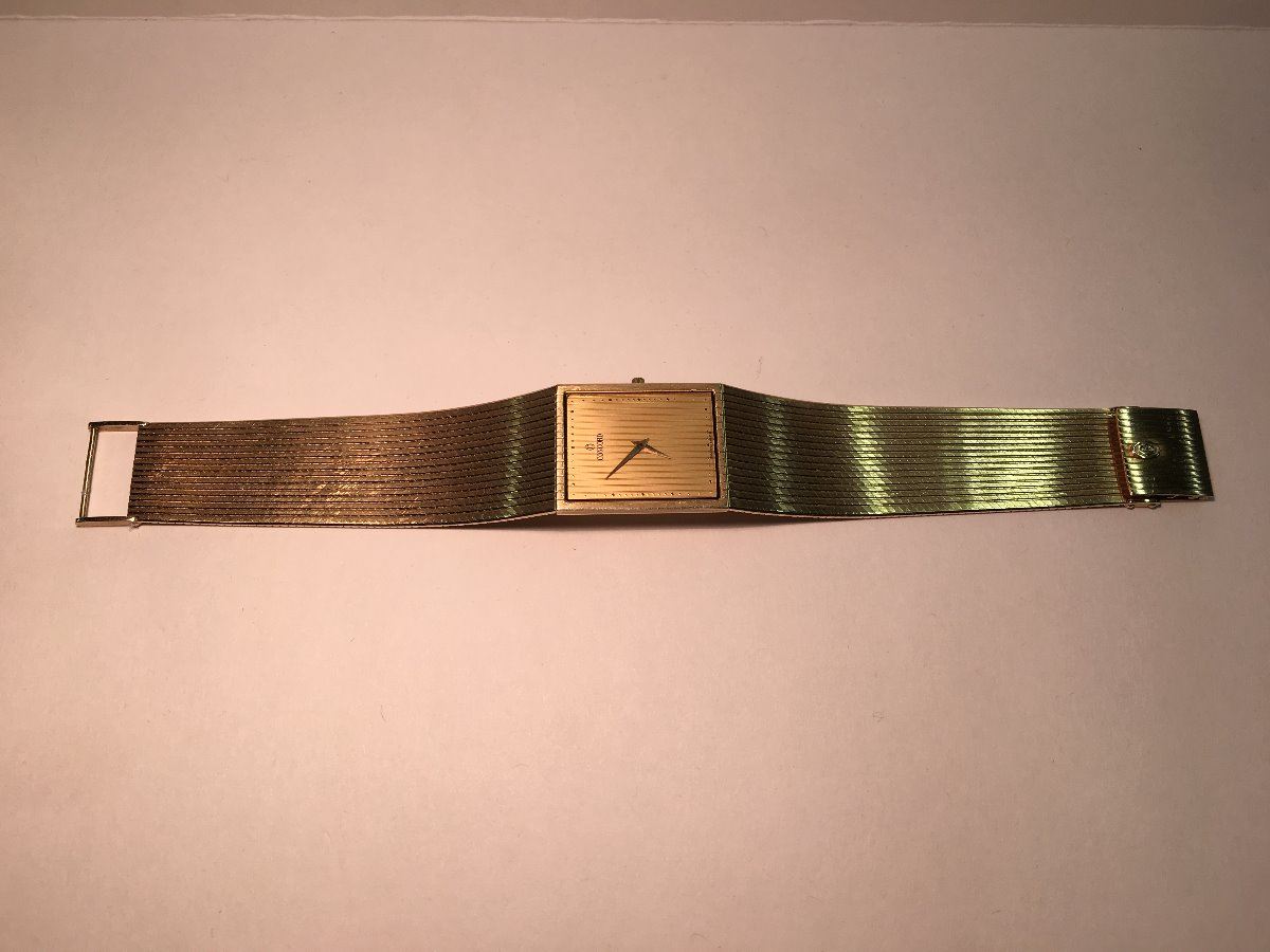 14KT YELLOW GOLD "SOLID" DRESS WRIST WATCH CONCORD-SQUARE SHAPE DIAL WITH CHAMPAGNE COLOURED FACE. SWISS MOVEMENT. ATTACHED IS A FANCY MESH STYLE BAND. REPLACEMENT VALUE:$14000.00