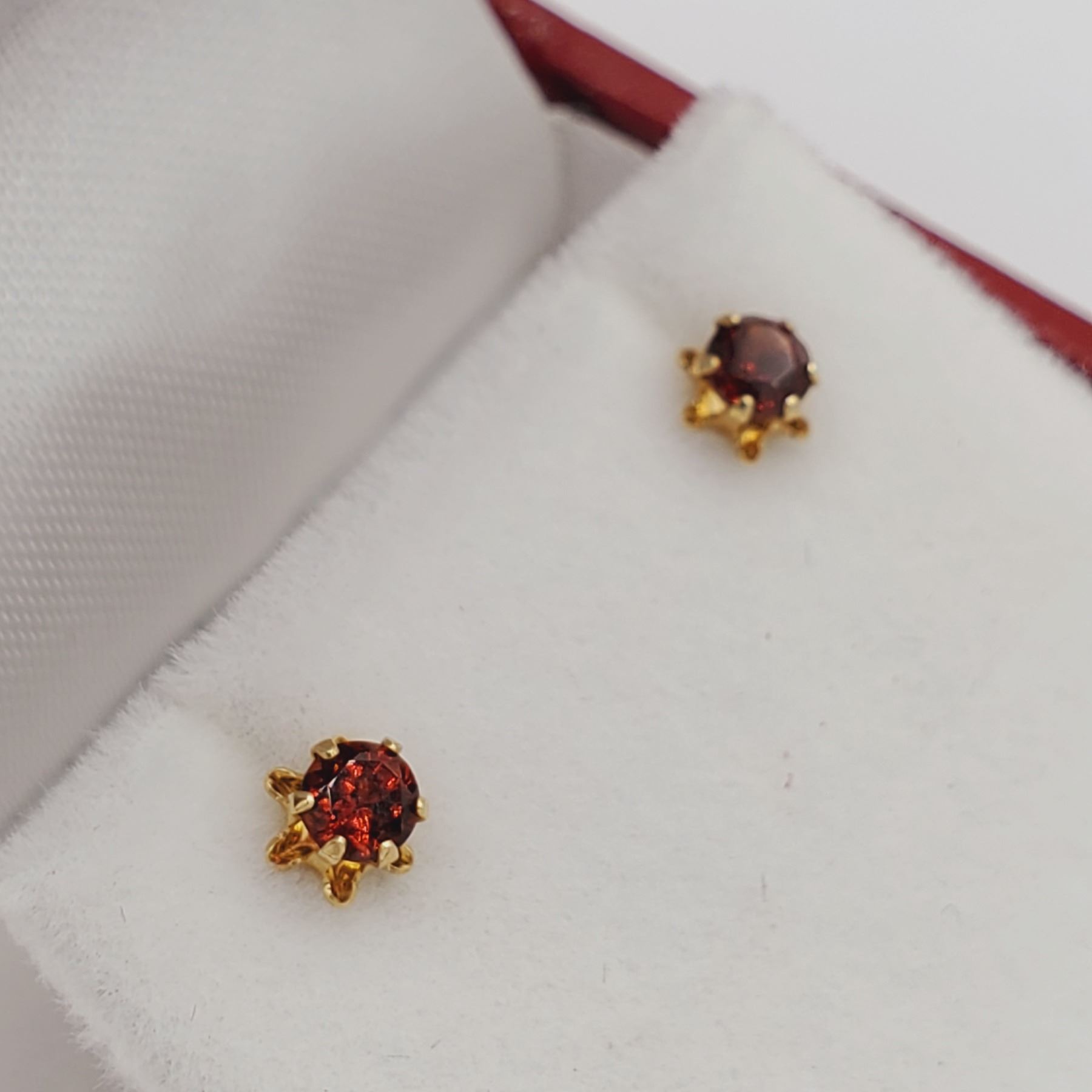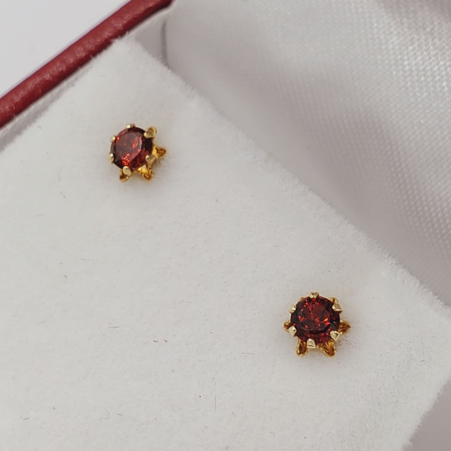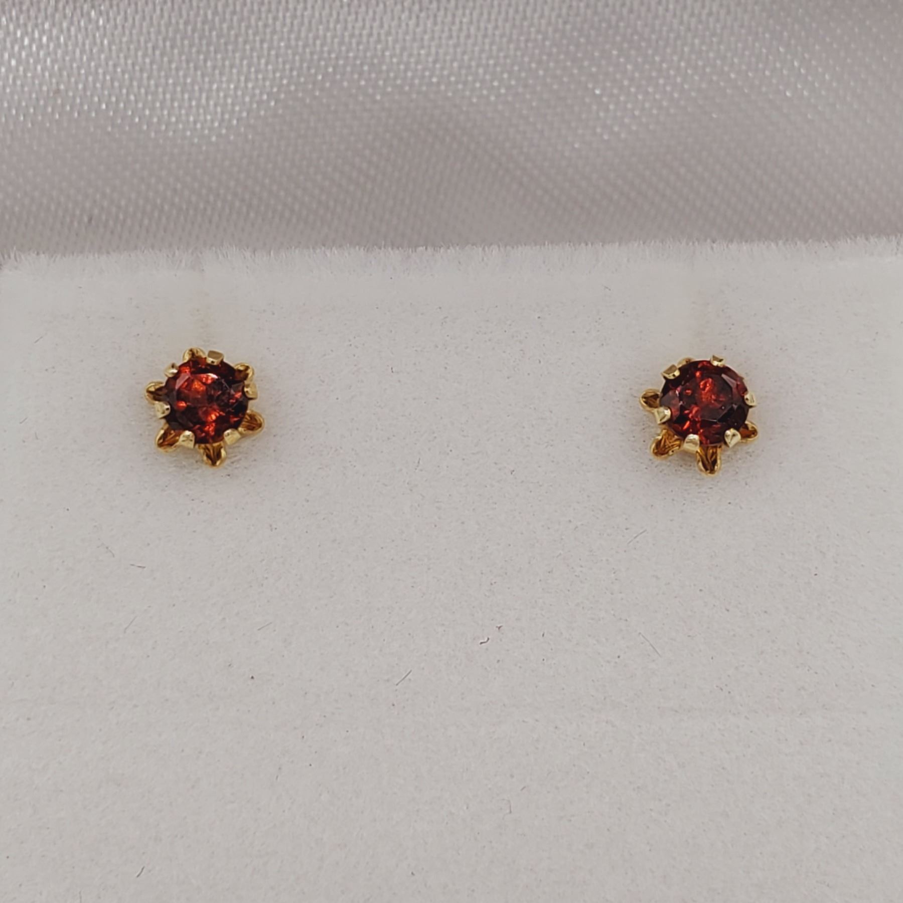 14kt. Yellow Gold 3mm genuine Garnet Earrings