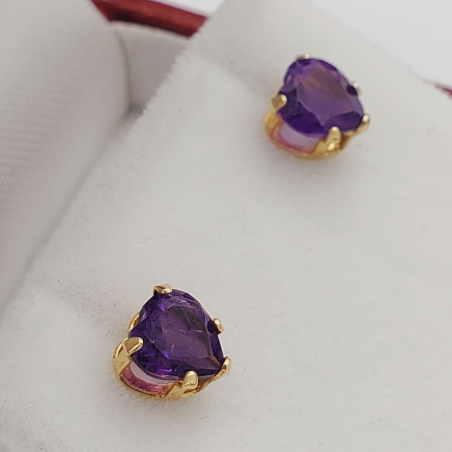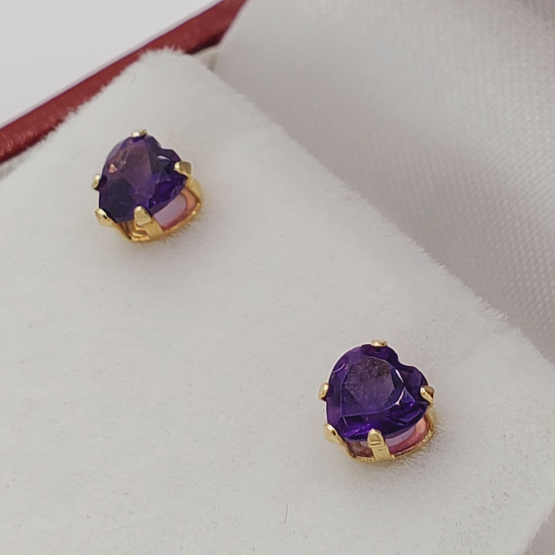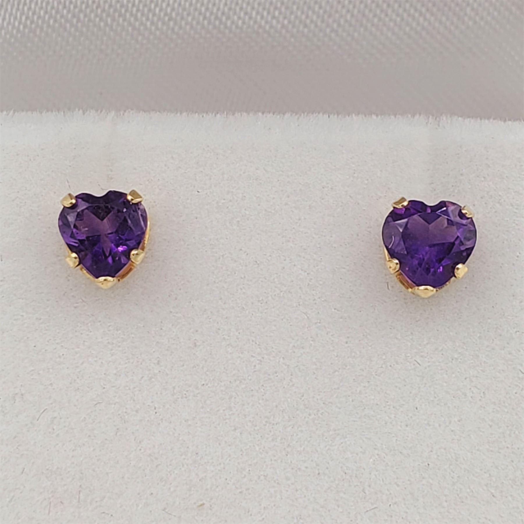 14kt. Yellow Gold 4mm x 4mm genuine Amethyst heart Earrings