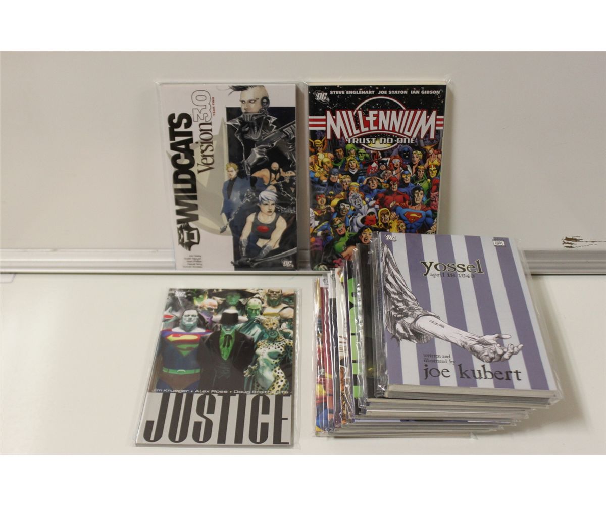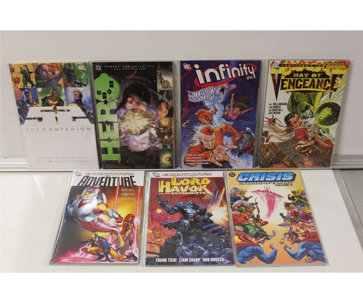 15 DC TRADE PAPERBACKS, ALL DIFFERENT. VARIOUS, OUT OF PRINT & NEW. HIGH GRADE.