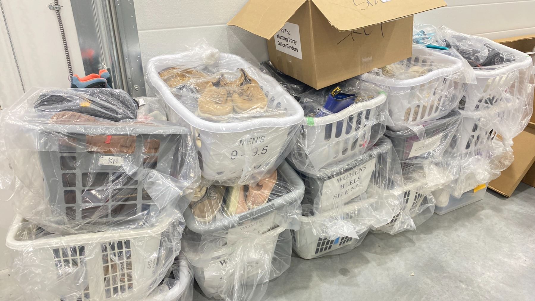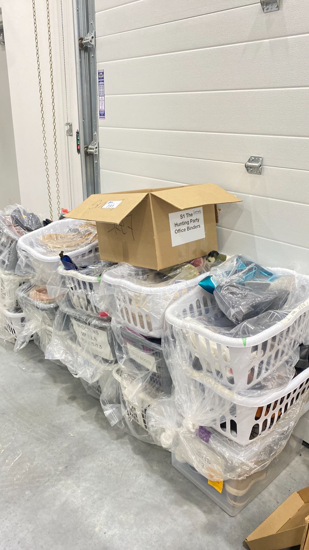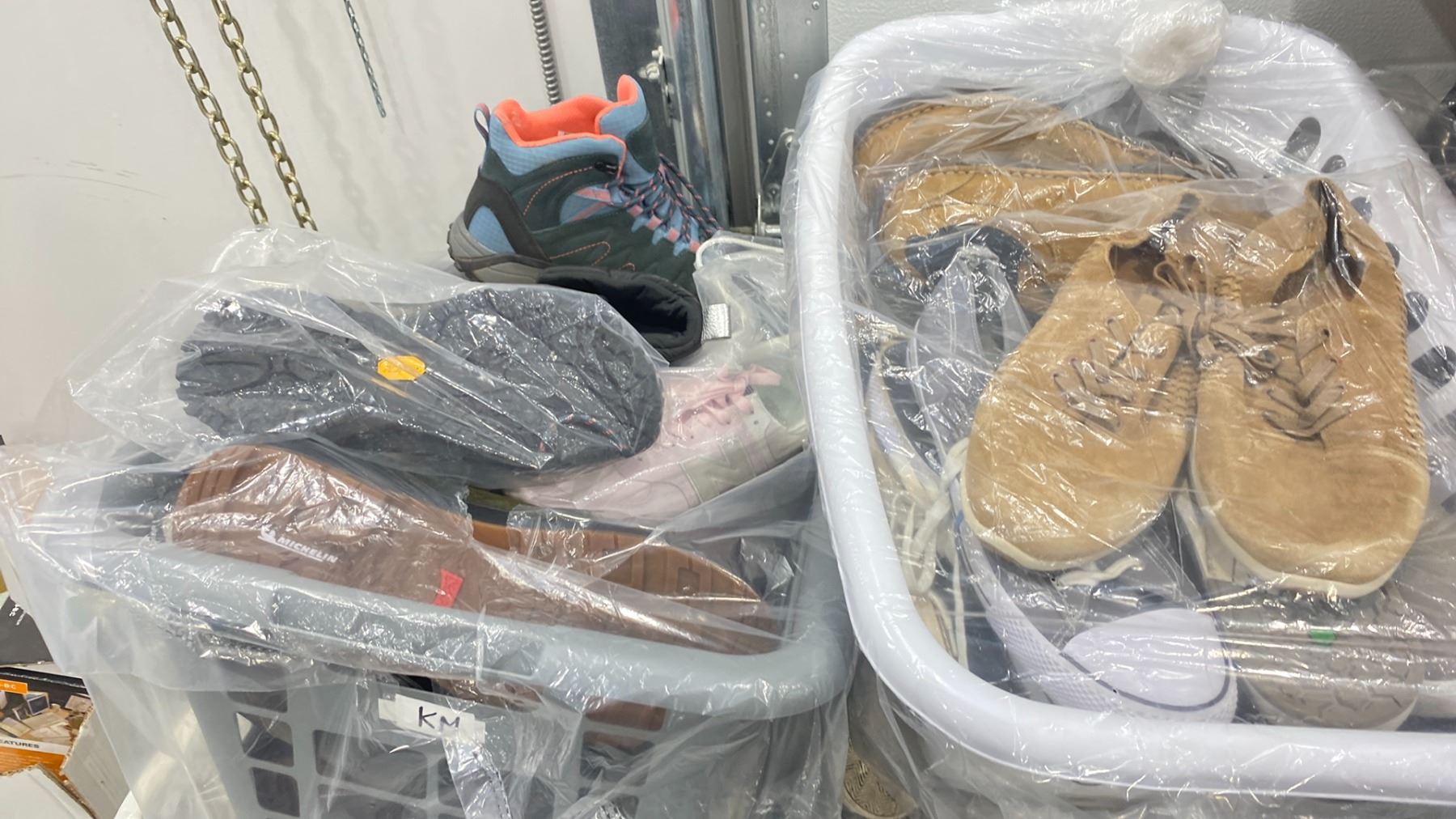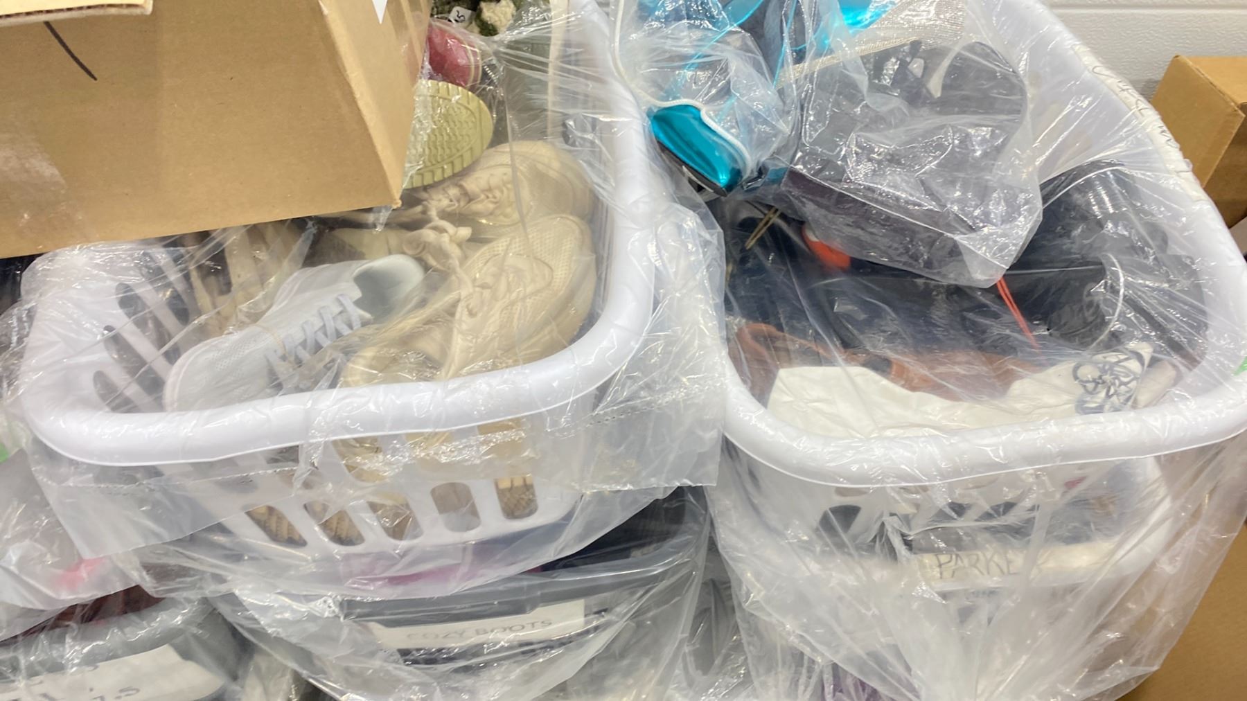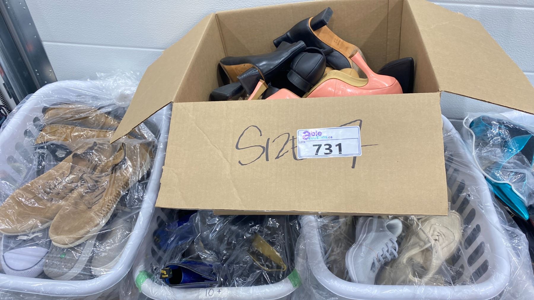 (15) LAUNDRY BASKETS & (1) BOX OF ASSORTED SHOES