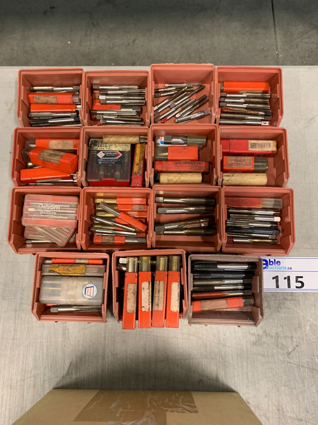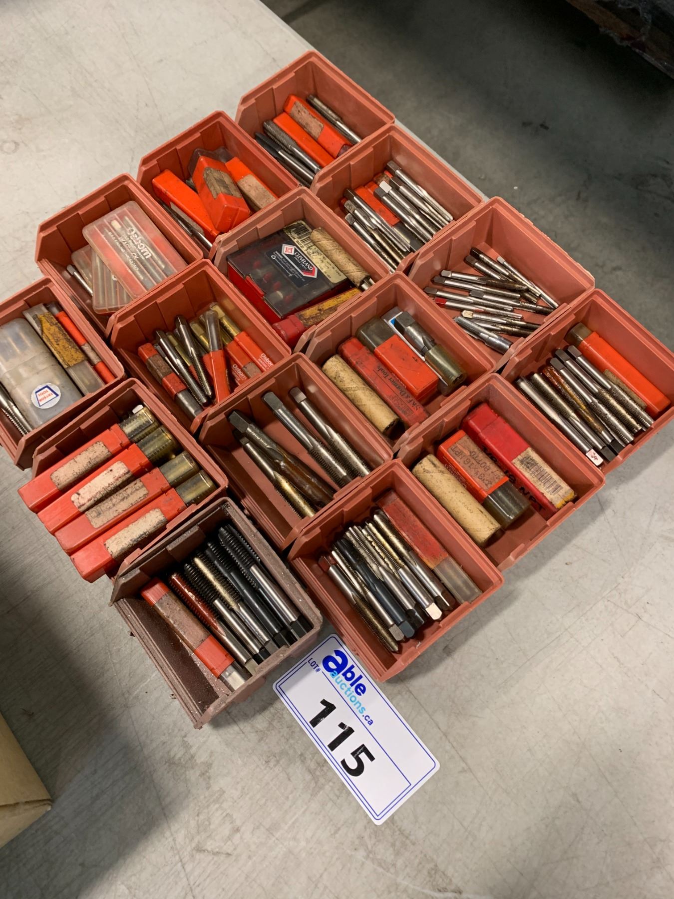 15 SMALL RED PARTS BINS OF ASSORTED TAPS