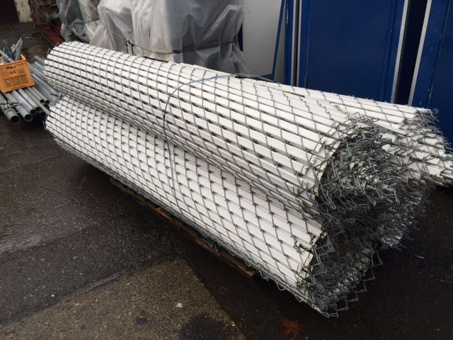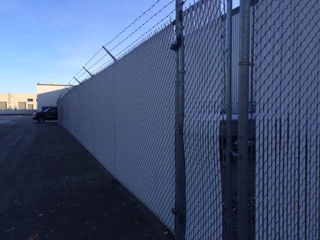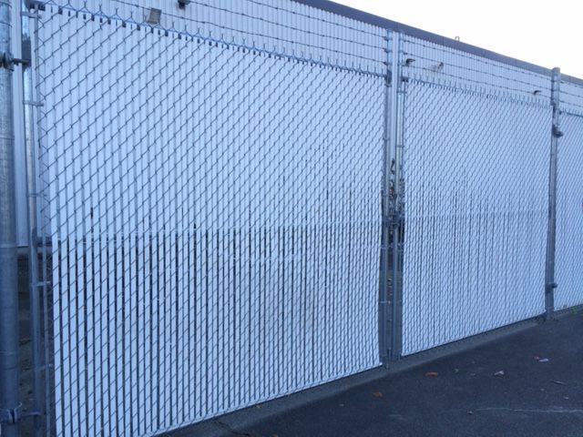 150' GALVANIZED CHAIN LINK FENCE WITH PRIVACY SLATS AND 1-16' GATE AND 1-3' GATE