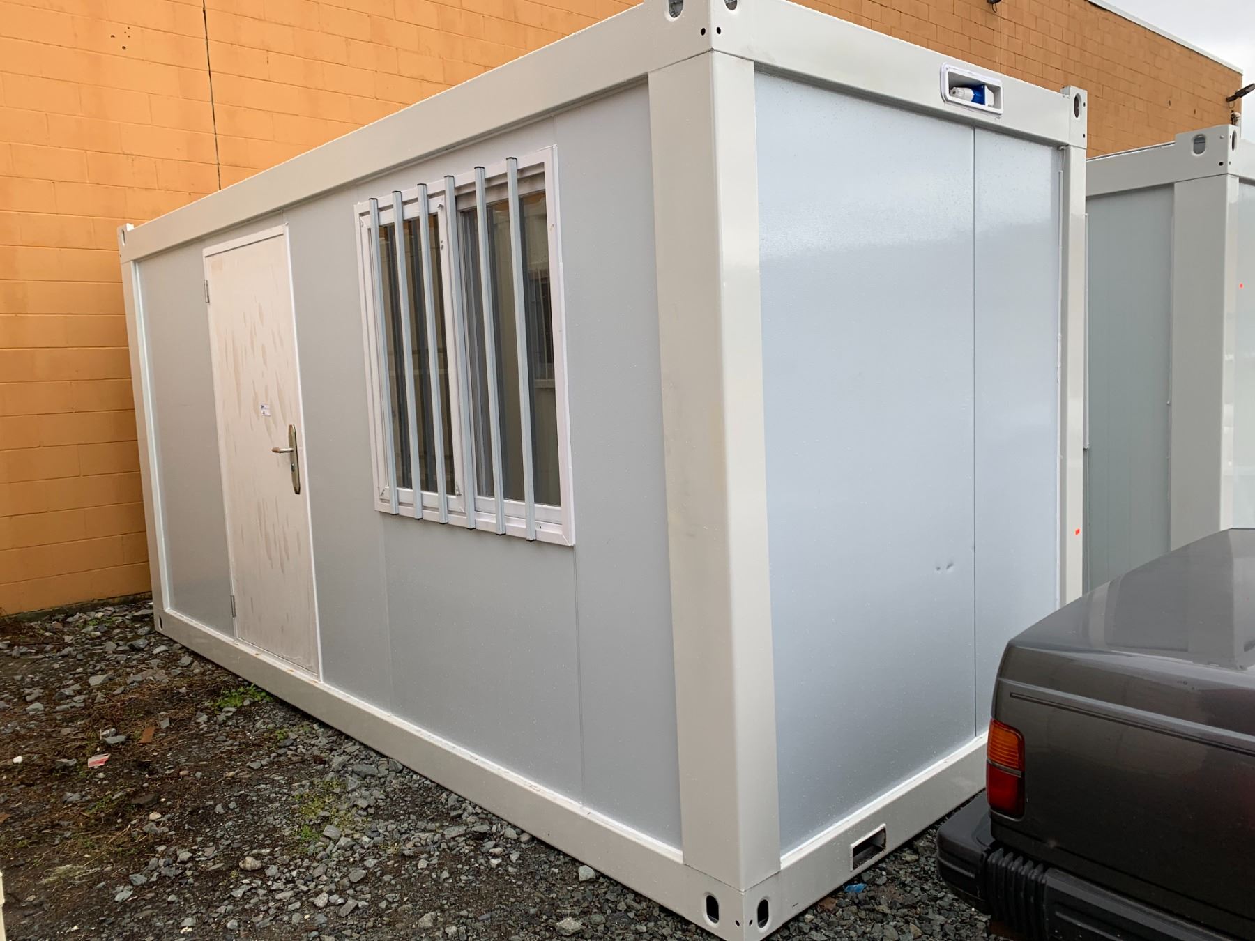 15FT WHITE PORTABLE OFFICE CONTAINER WITH SINGLE MAN DOOR / BAR WINDOW & WASHROOM 183"L X 81"W X 95"H
