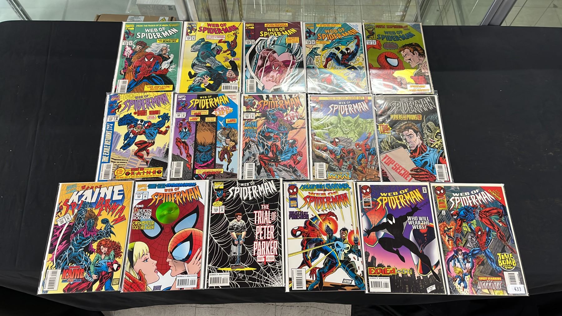 (16) MARVEL WEB OF SPIDER-MAN COMIC BOOKS; #113-128