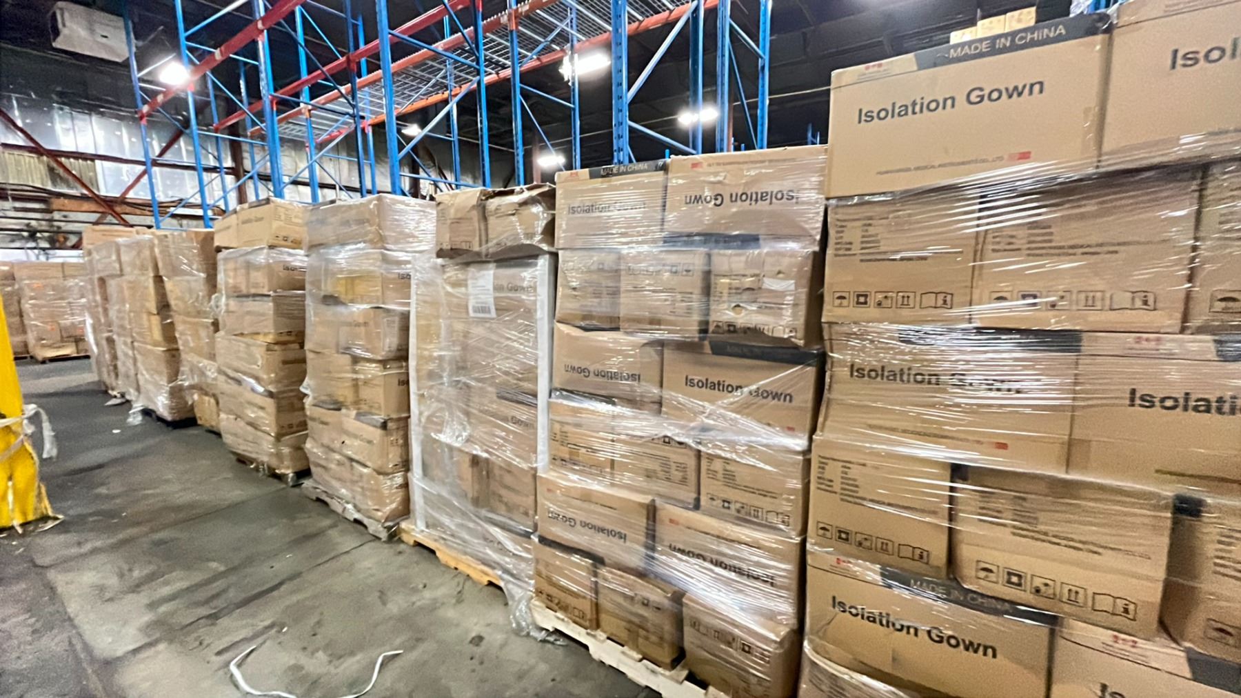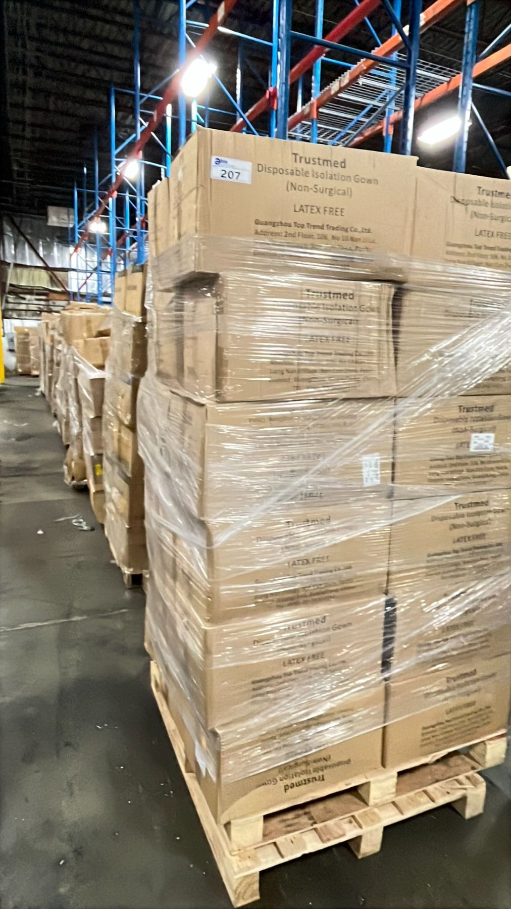 16 PALLETS OF DISPOSABLE ISOLATION GOWNS (NON MEDICAL) -APPROX. 30 BOXES PER PALLET/120 PCS. PER