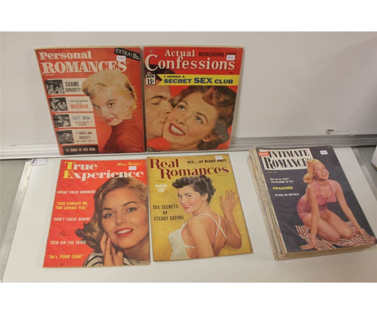 17 1950'S -60'S ROMANCE MAGAZINES. SENSATIONAL, LEWID CONTENT. VERY NICE, SOLID SHAPE
