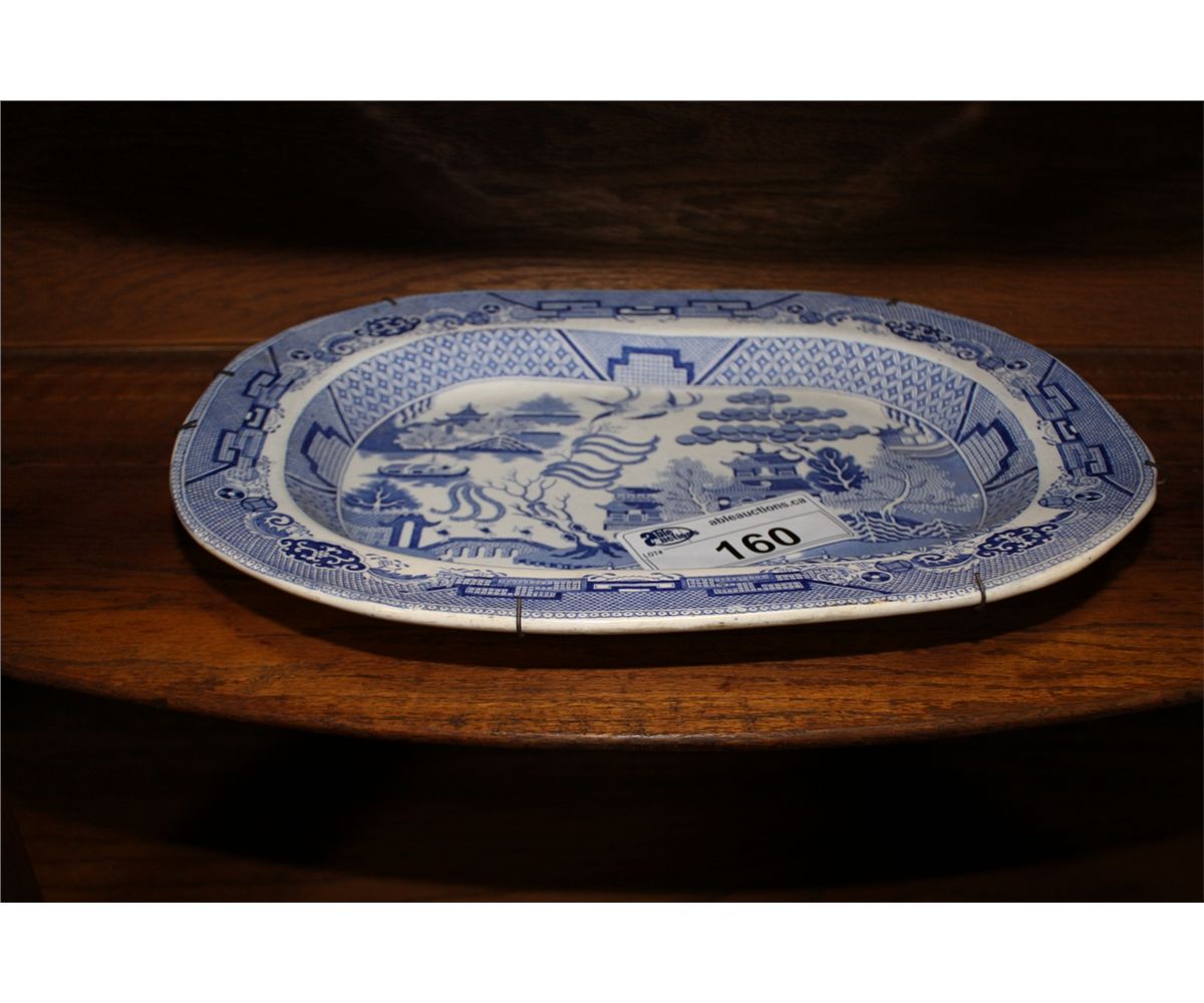 1870'S LARGE BLUE WILLOW CHINA PLATTER