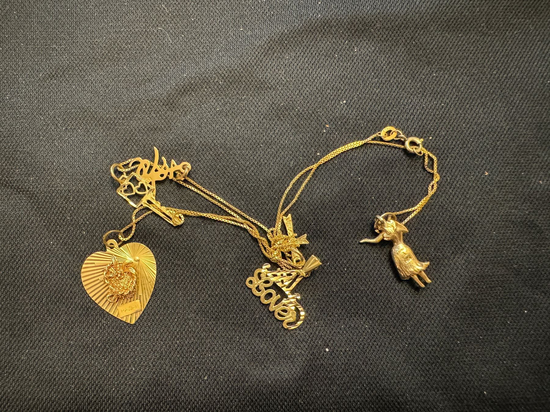 18K 22" CHAIN WITH SIX 10K PENDANTS 8.8G