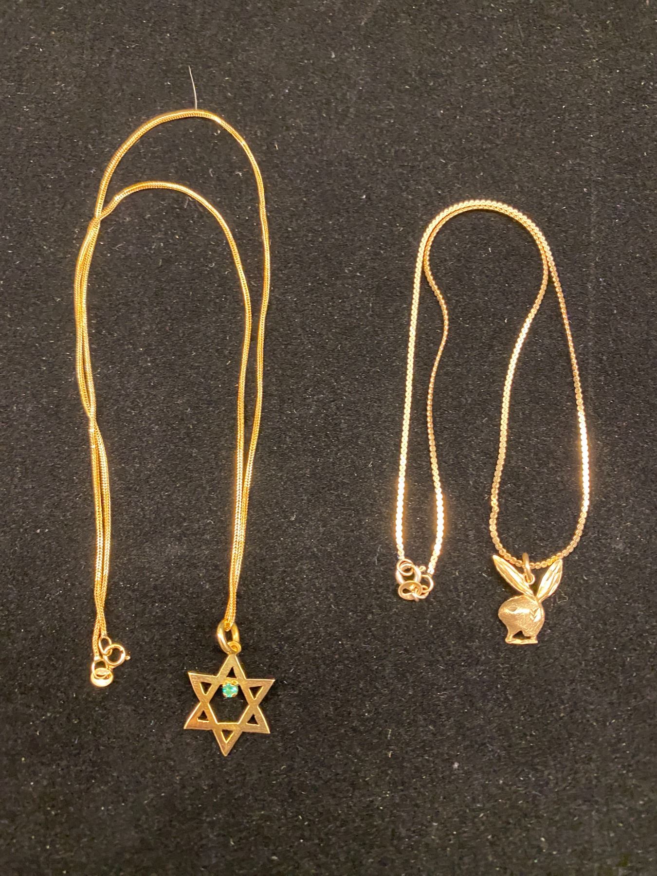 18K CHAIN (18") WITH 14K STAR OF DAVID PENDANT AND 10K CHAIN (15") WITH 10K PLAYBOY PENDANT (5.9G)