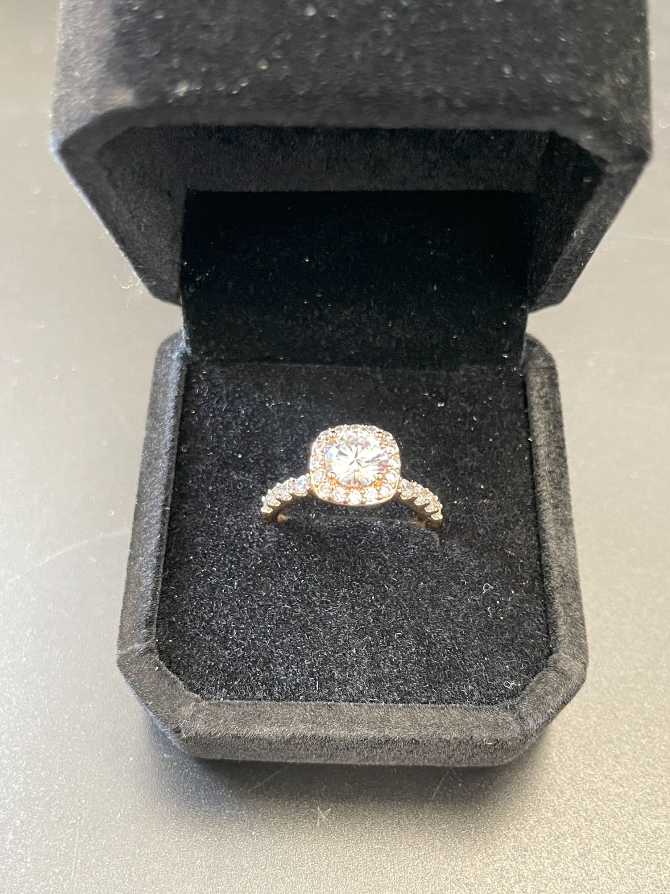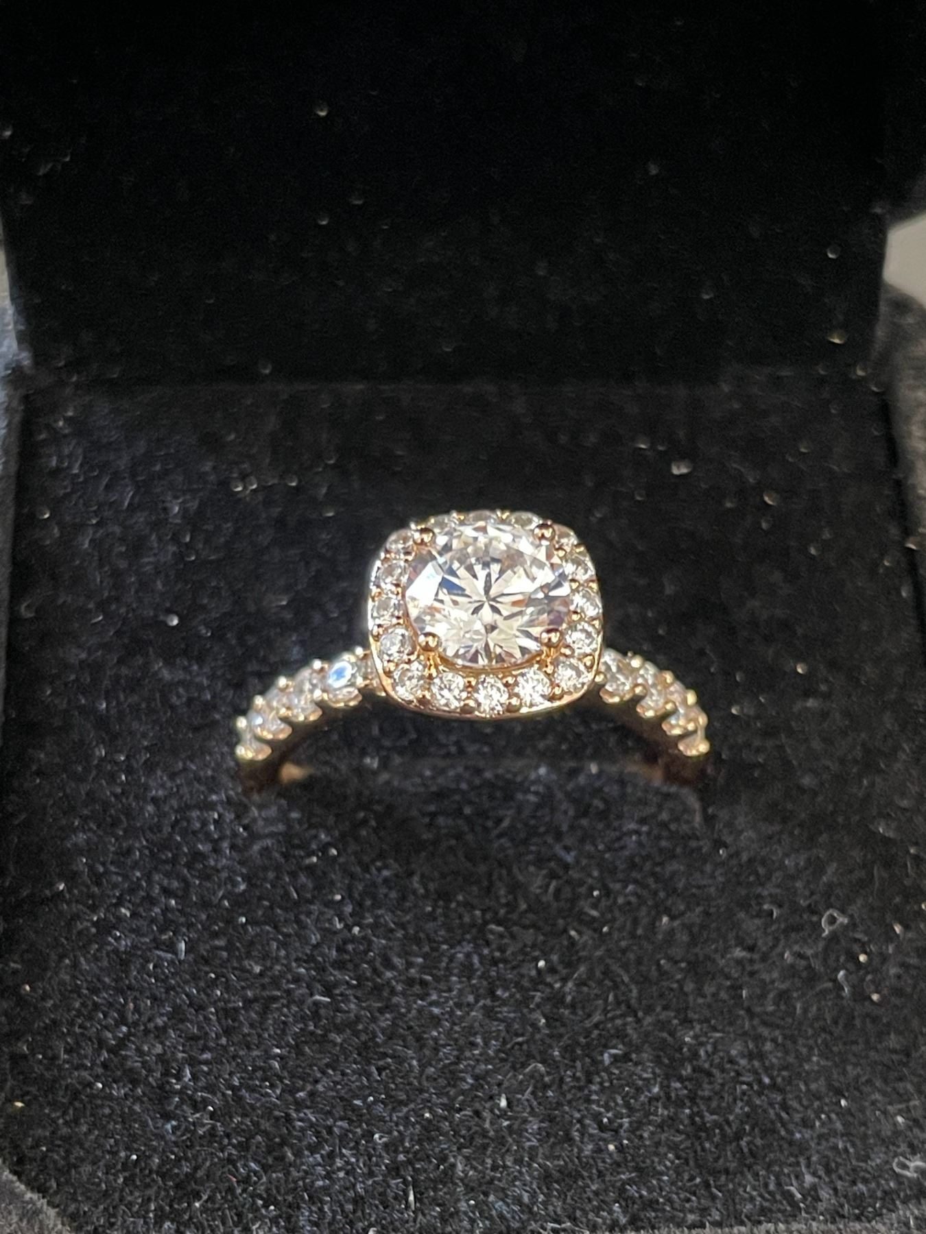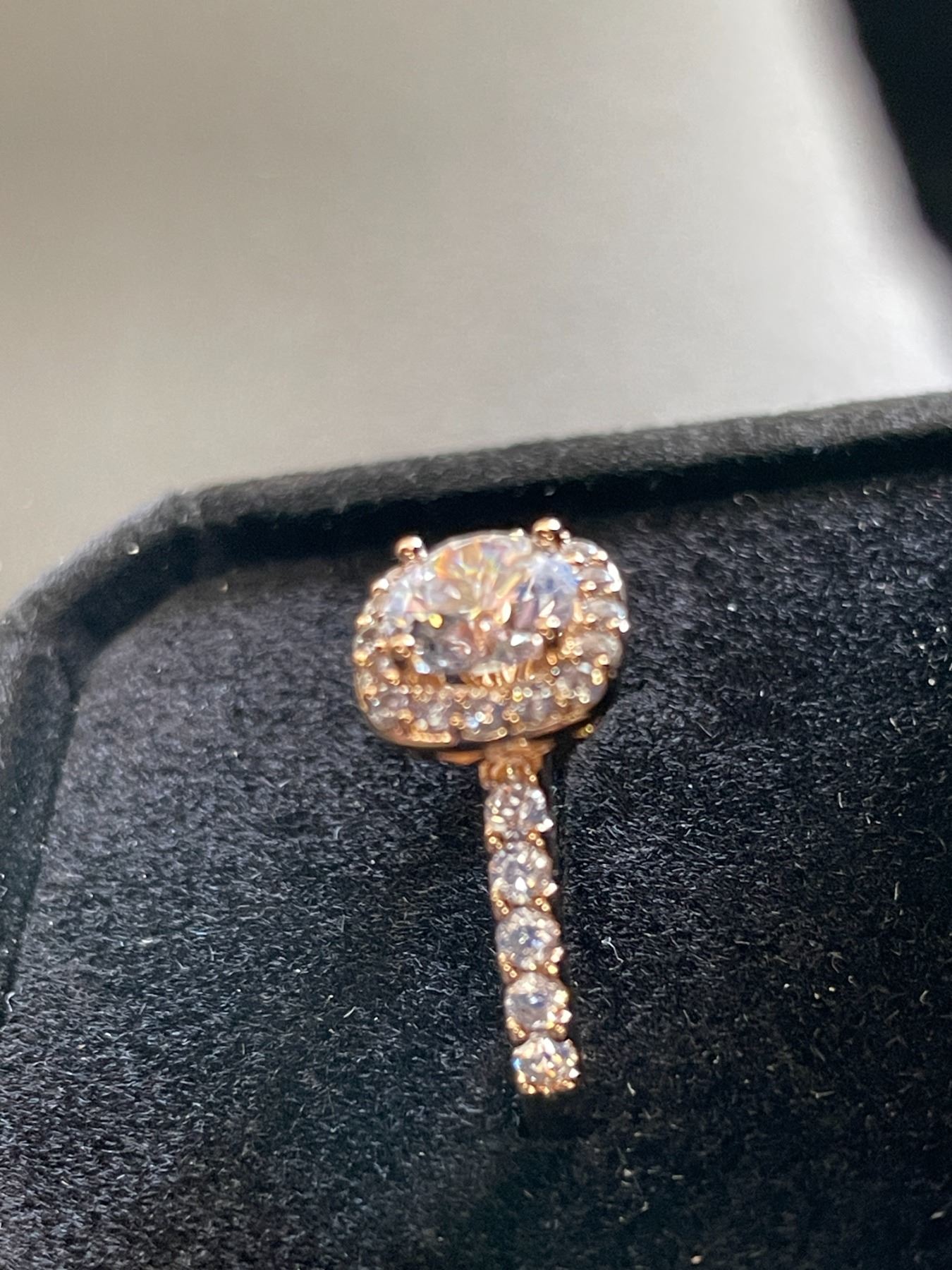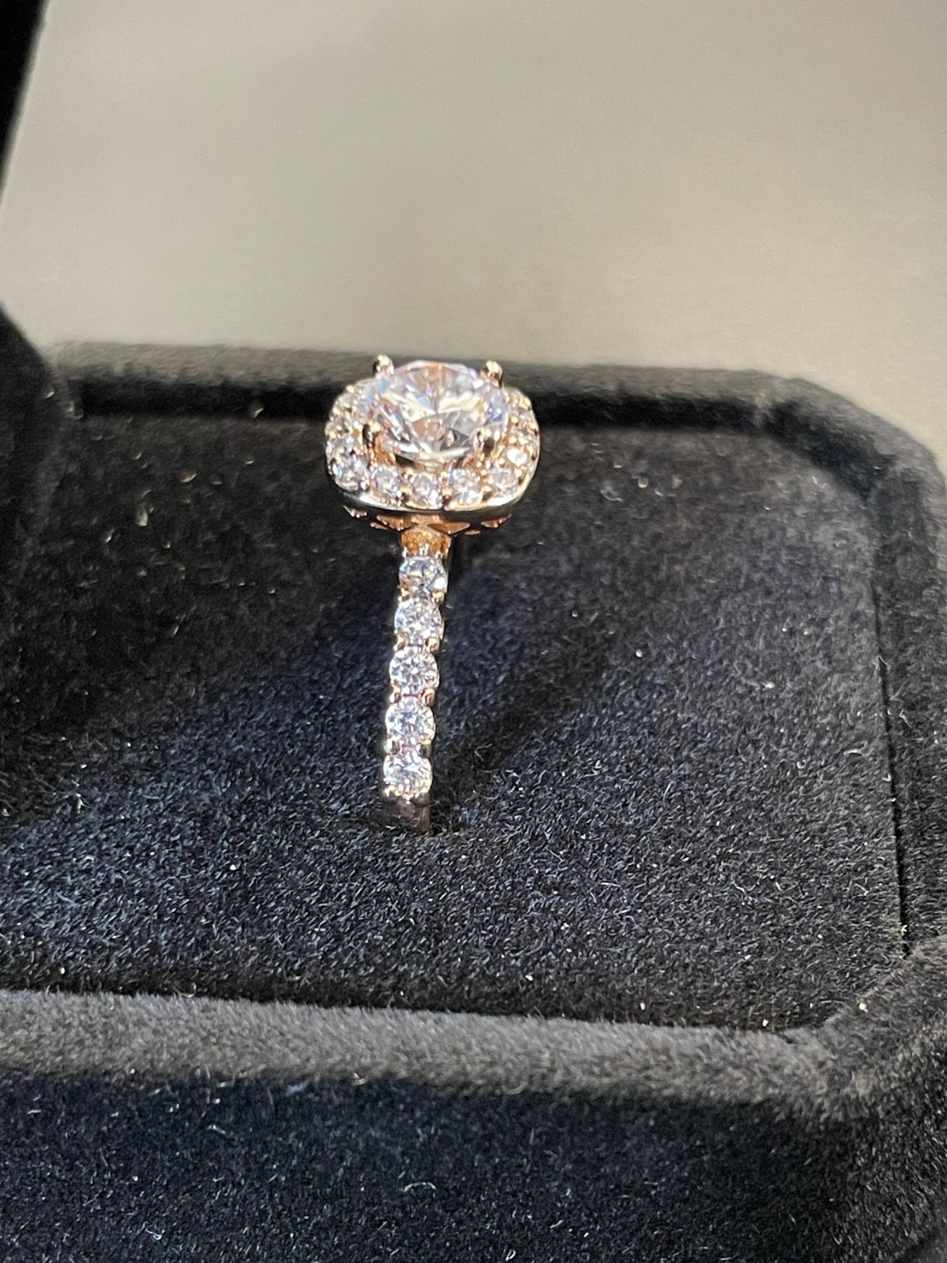 18K GOLD PLATED 1.0CT LAB CREATED WHITE SAPPHIRE HALO CHANEL RING, SIZE 7