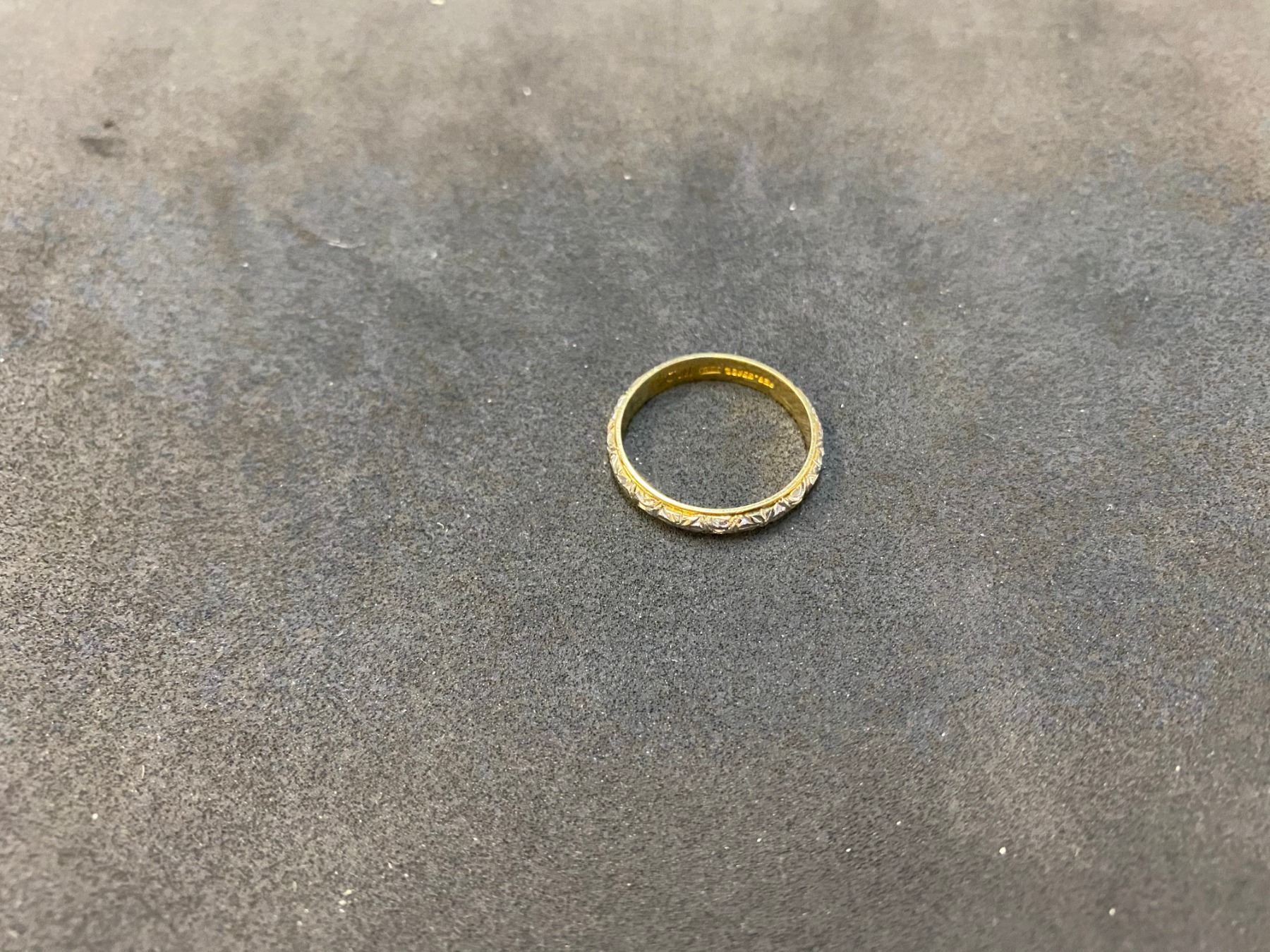 18K LADIES ORNATE WEDDING BAND RV $450.00