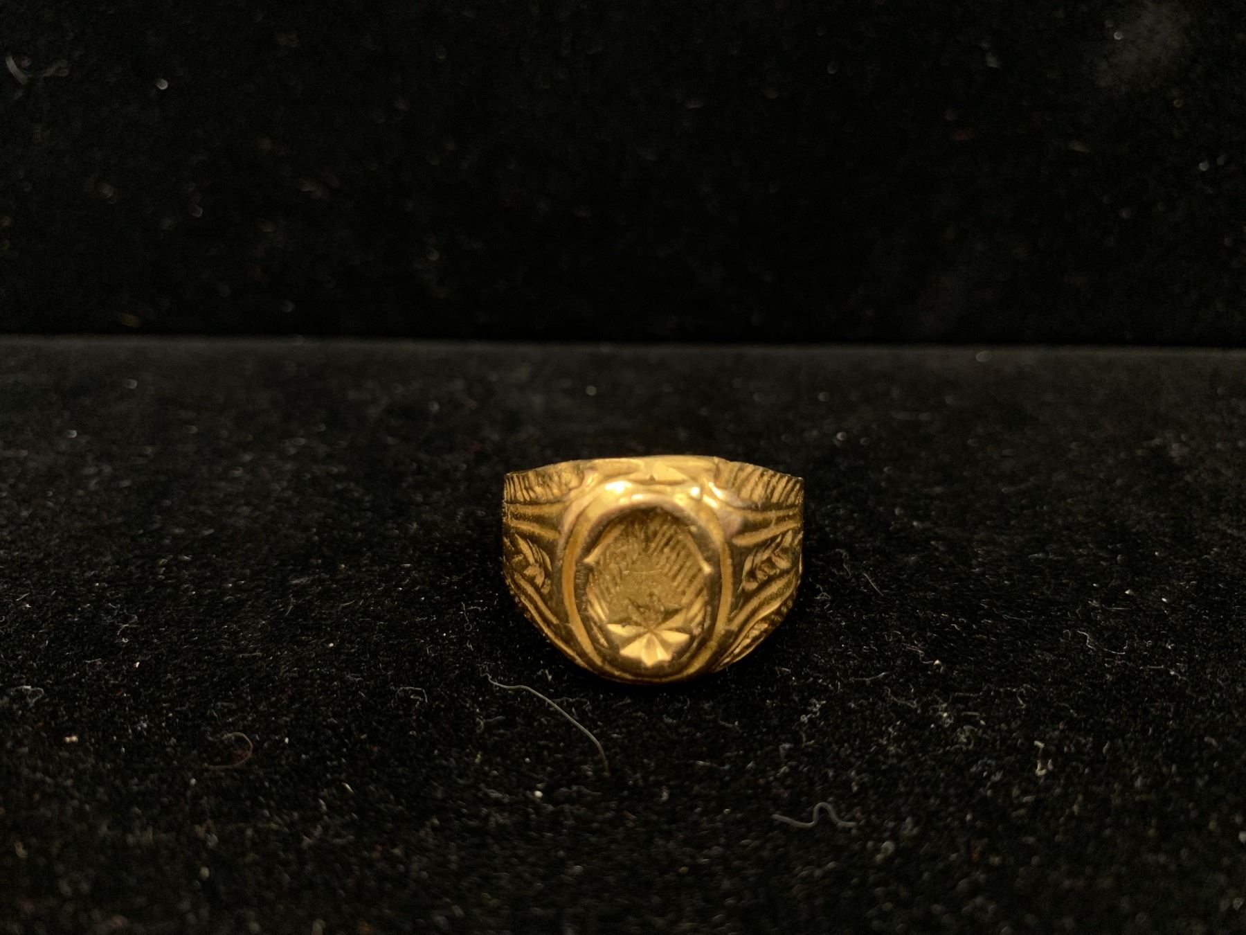18K+ MENS RING WITH FLORAL MOTIF (6.4G)
