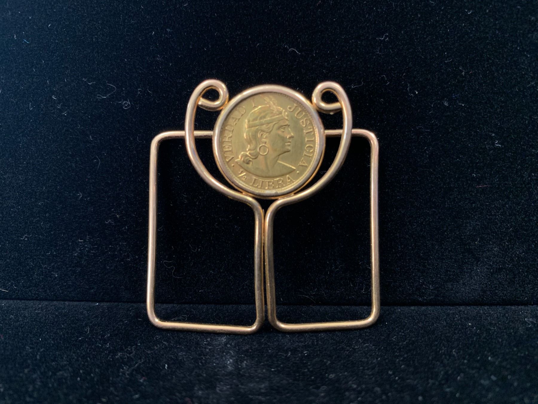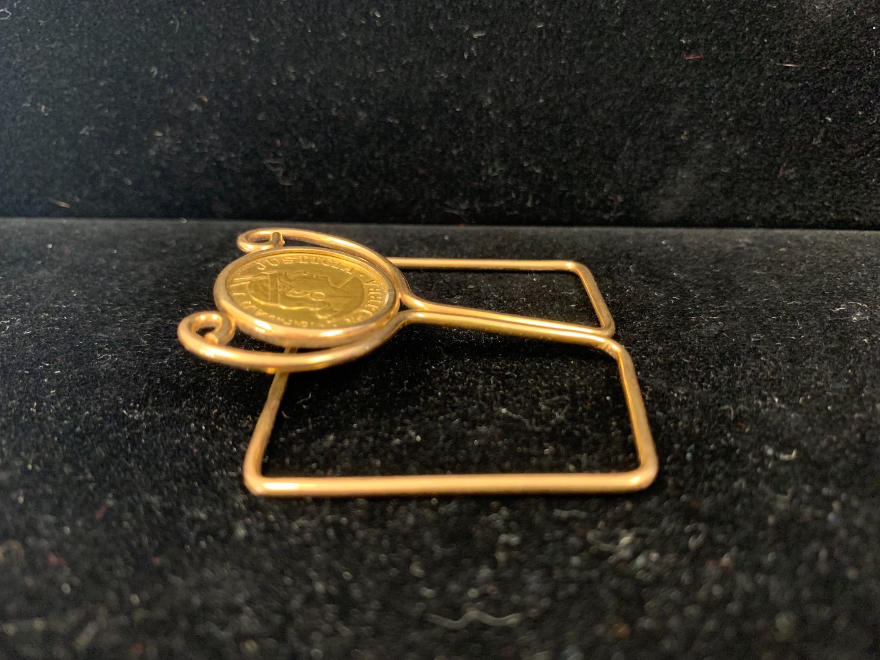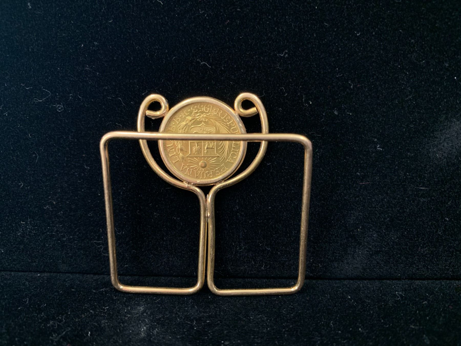 18K MONEY CLIP SET WITH 22K 1953 PERU GOLD COIN (13.7G TOTAL)