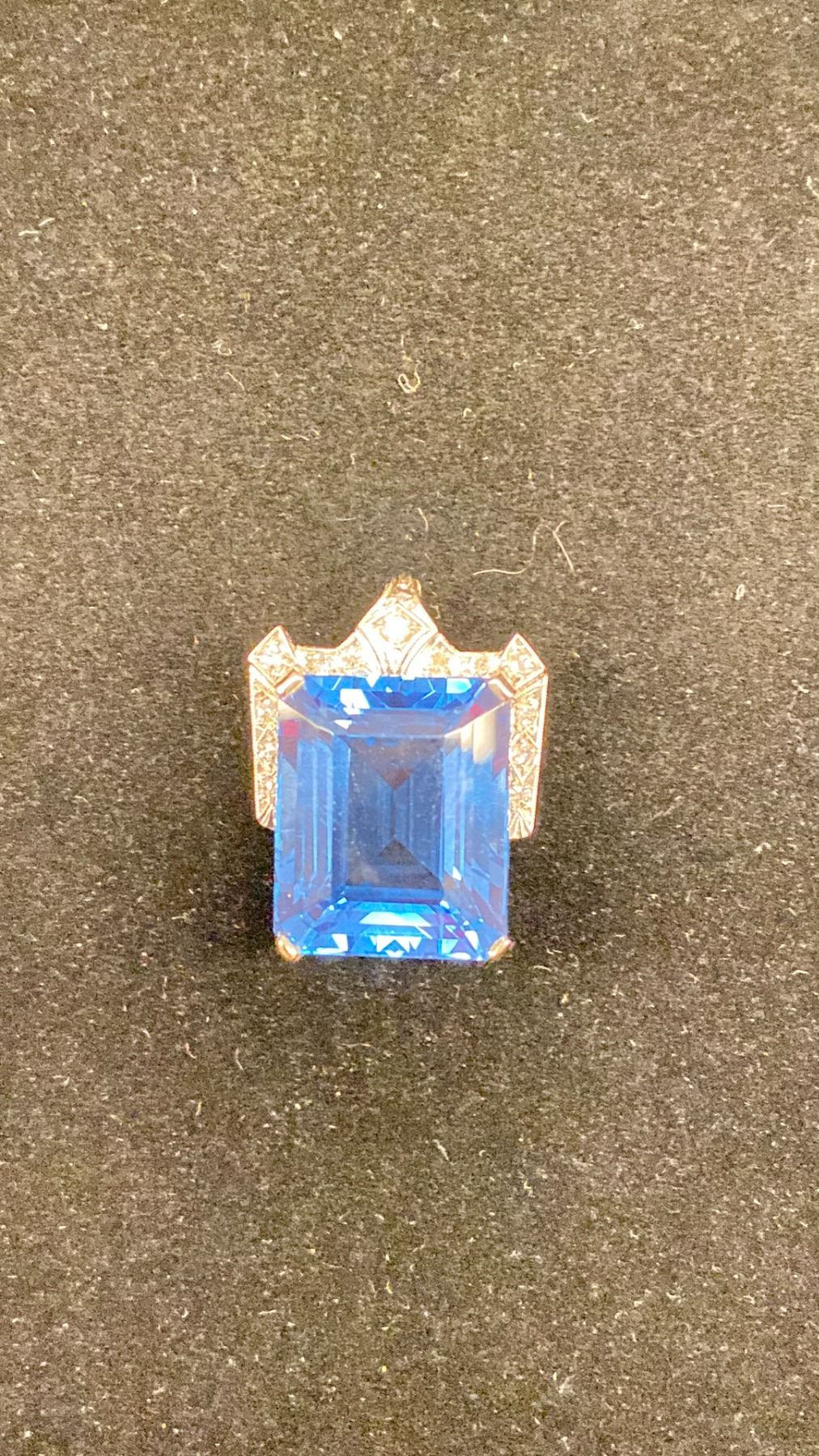 18K PENDANT SET WITH BLUE TOPAZ AND DIAMONDS (13.7G)