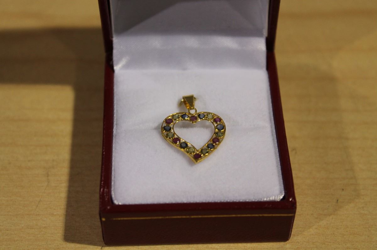 18KT GOLD SAPPHIRE AND RUBY PENDANT (0.63G)APPRAISED $2082