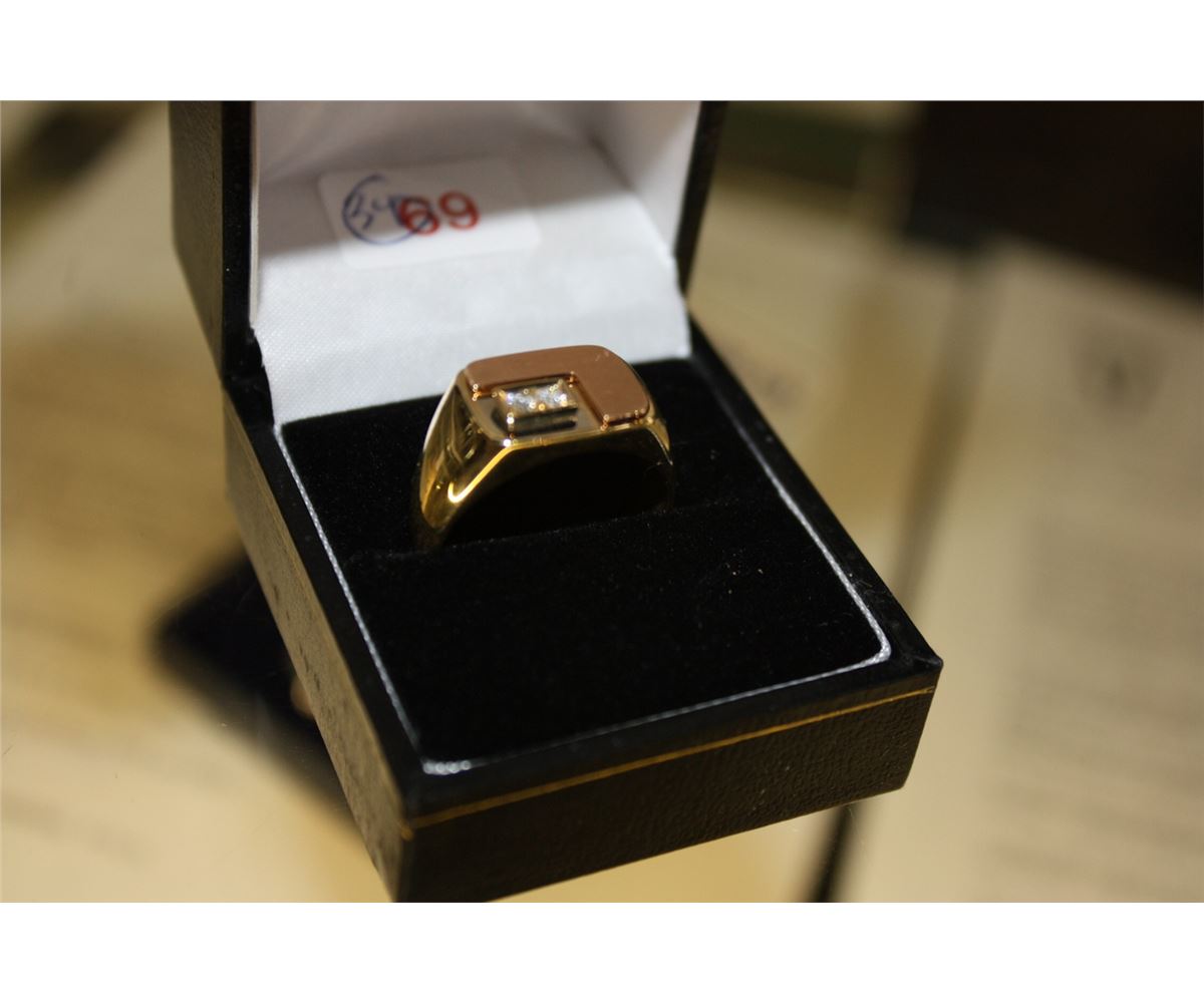 18KT WHITE AND ROSE GOLD DIAMOND SET GENTS RING WITH 2 DIAMONDS, APPROX 0.10CARAT REPLACEMENT VALUE $1350
