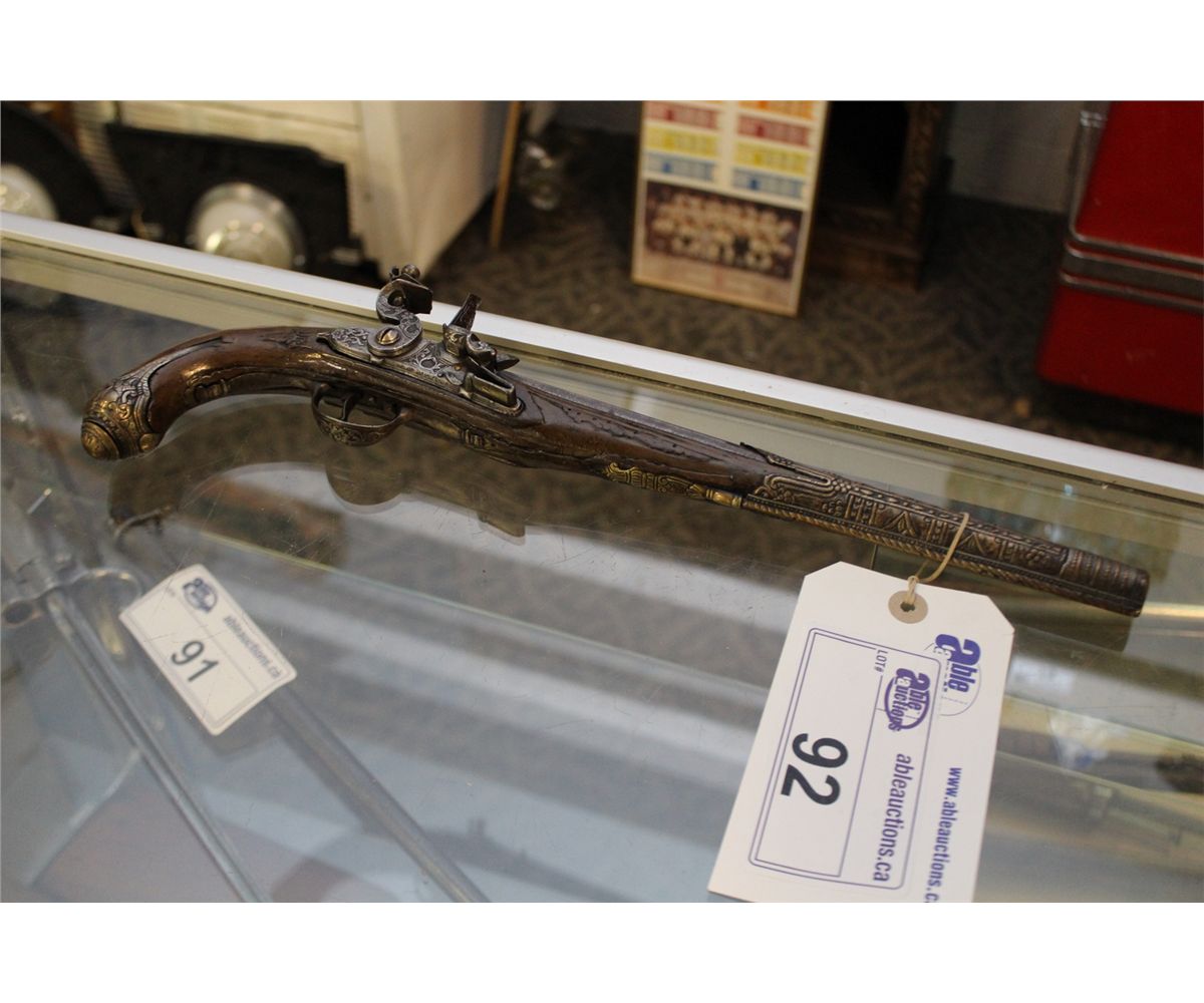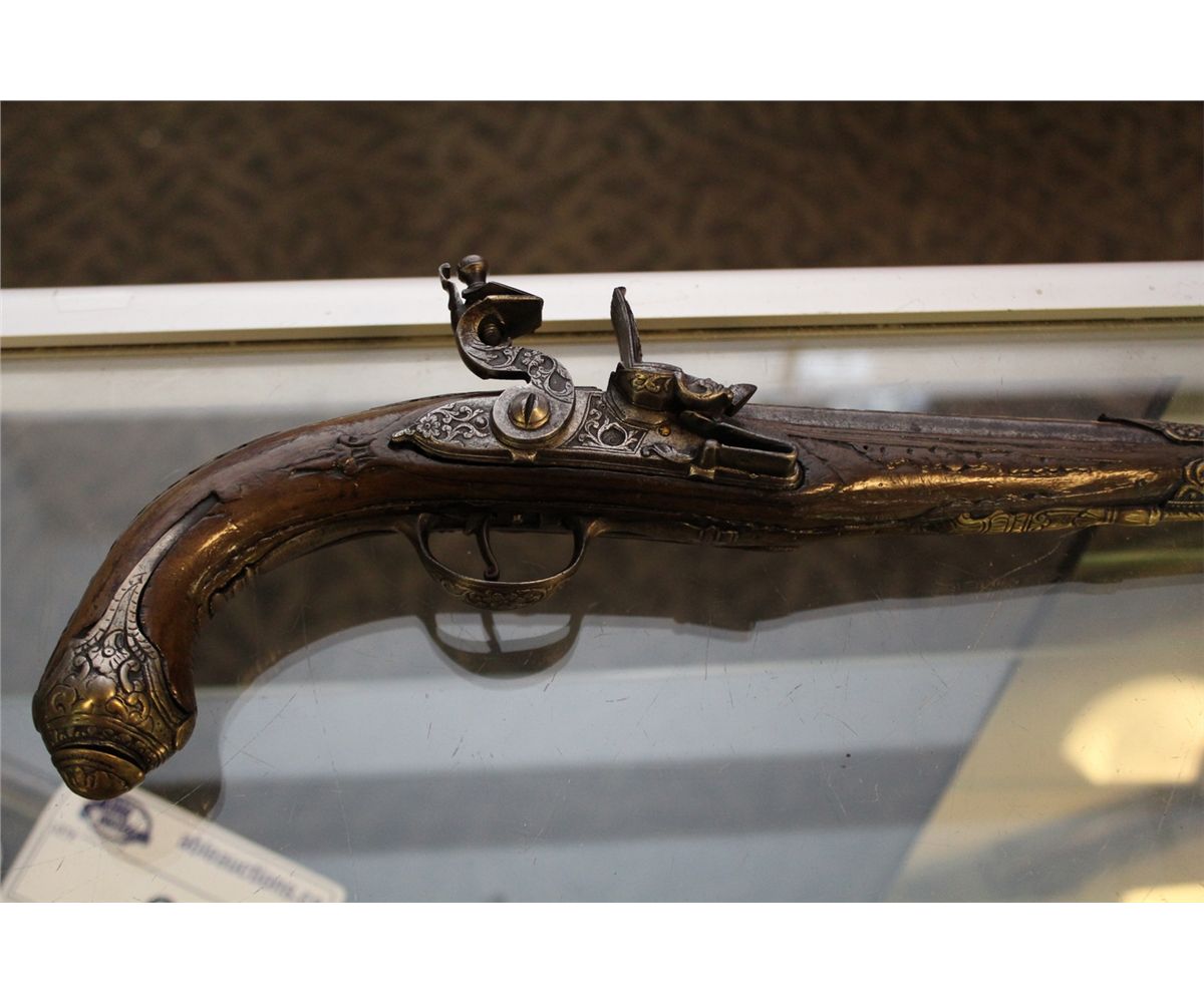 18TH CENTURY FLINT LOCK PISTOL WITH GOLD AND SILVER INLAY, BELIEVED TO BE TURKISH