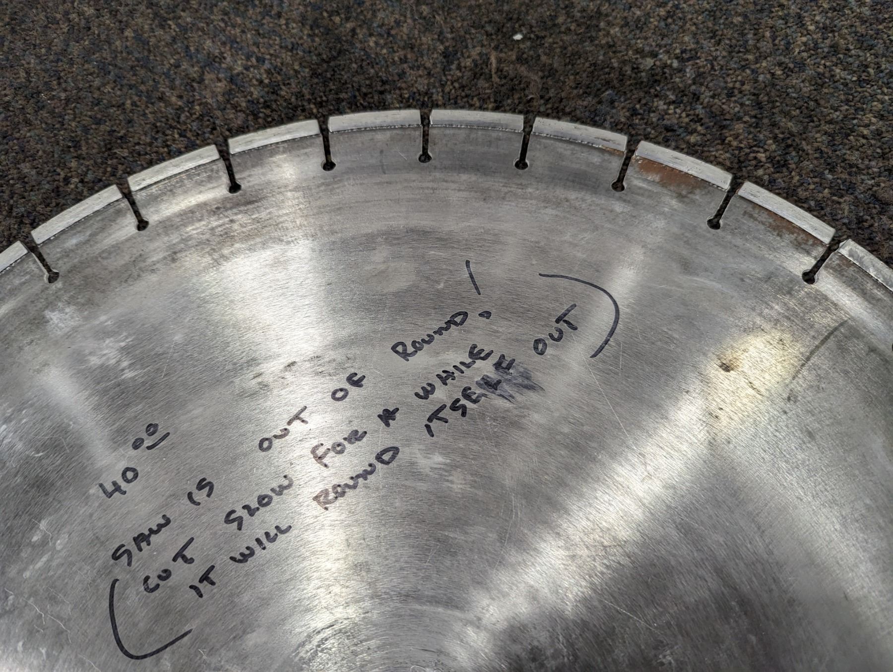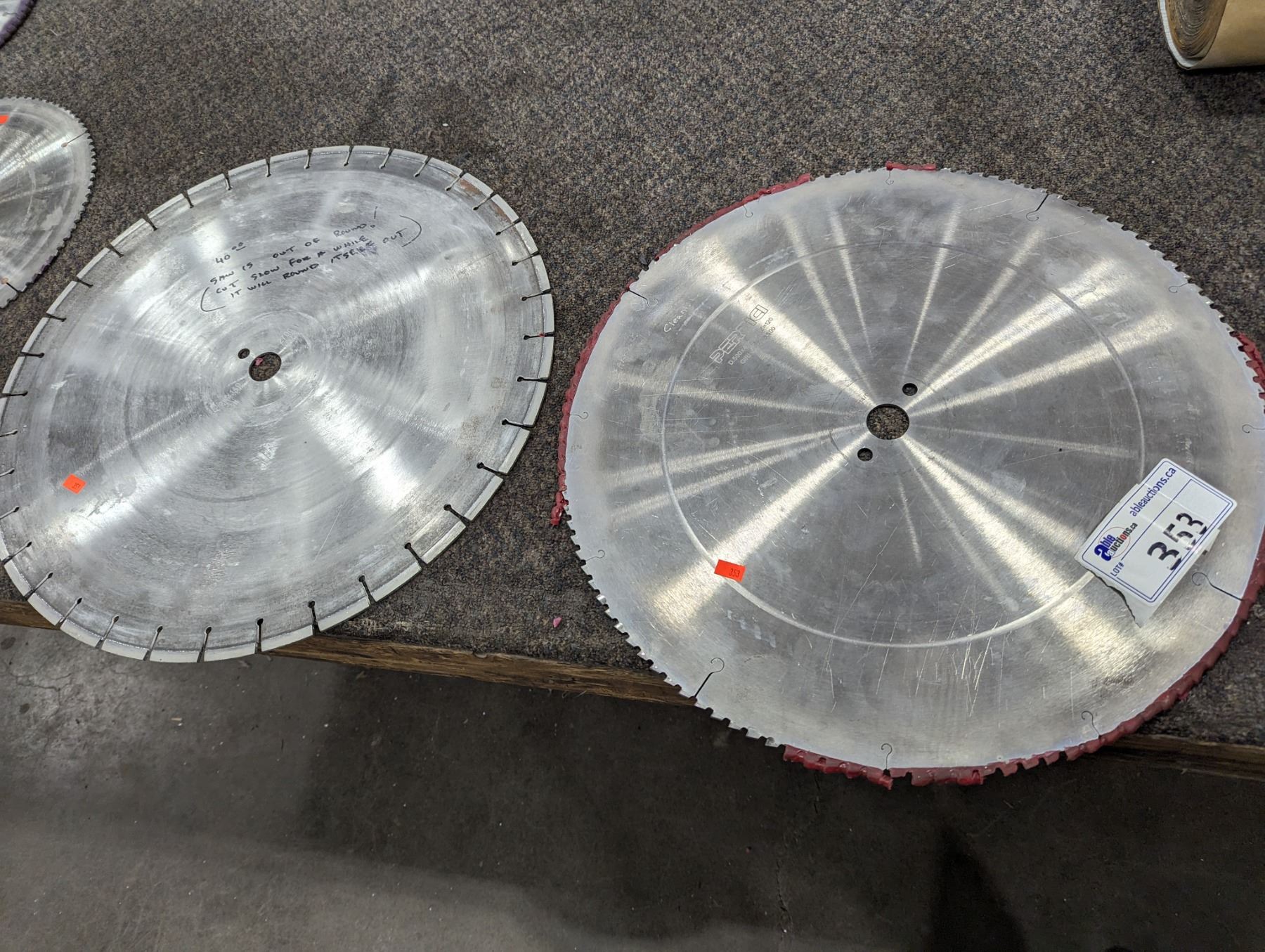 19 1/2" CARBIDE BLADE-SHARPENED AND 20 1/2" DIAMOND SAW BLADE
