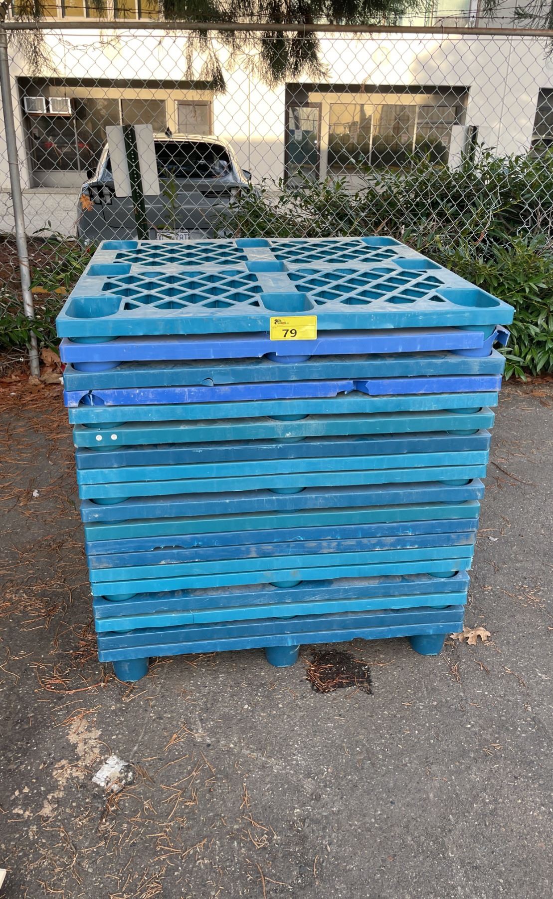 19 BLUE PLASTIC INDUSTRIAL 4 X 4 TRANSPORT PALLETS *MUST TAKE ALL*