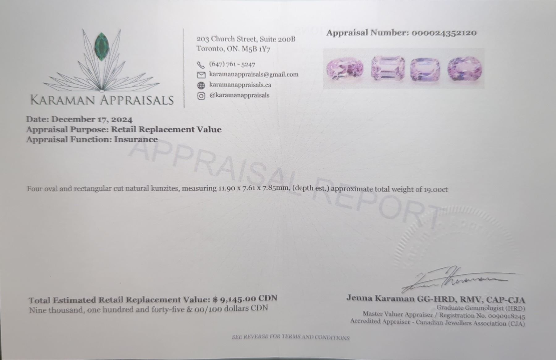 19 CT CERTIFIED PINK KUNZITE GEMSTONE PARCEL ($9,145 APPRAISAL) - **APPRAISAL NOT GUARANTEED**
