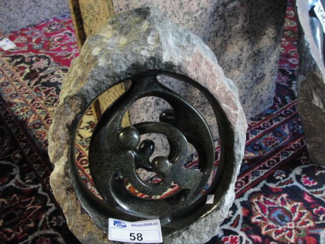 19" TALL HAND CARVED AFRICAN SHONA SPRING STONE FAMILY CIRCLE STATUE