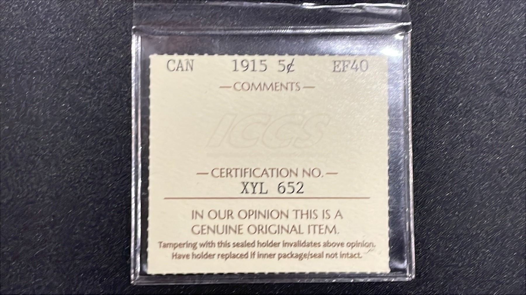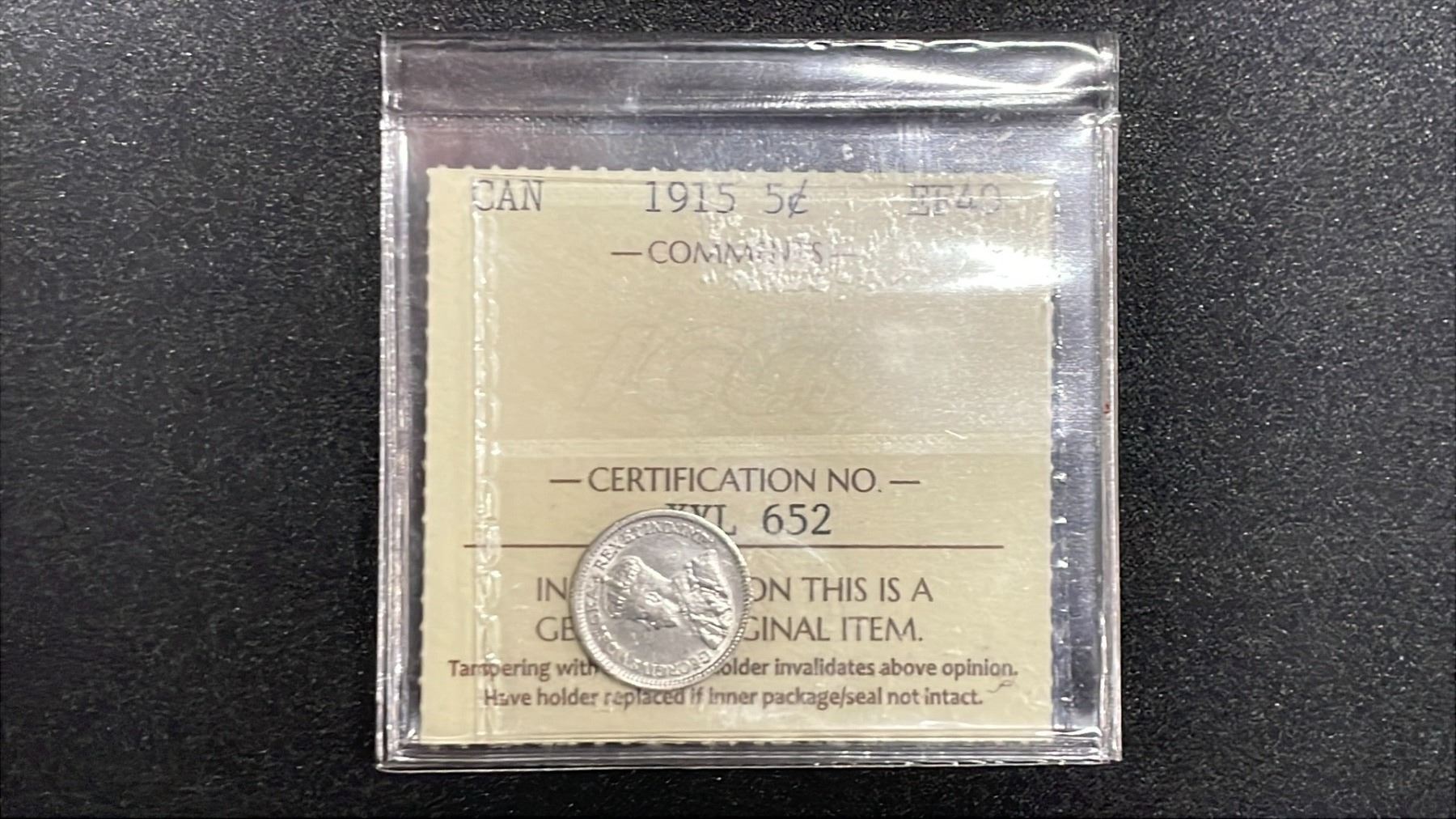 1915 CANADIAN $0.05 (FIVE CENT) COIN ICCS CERTIFIED