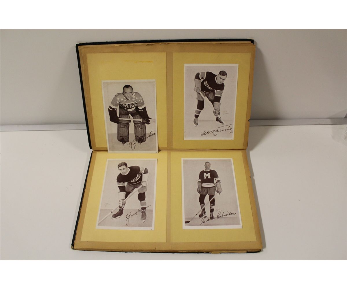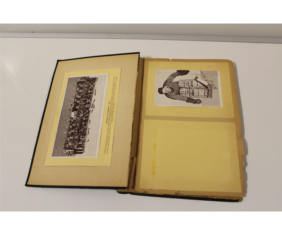 1930'S ERA CHILD SCRAP BOOK INCL. "COW  BRAND" PHOTOS WHICH WERE THE CANADIAN STARCH COMPANY'S RESPONSE TO THE POPULAR SIMILAR MAIL-IN PROMOTION. INCL. HOWIE MORENZ, ACE BAILEY & MONTREAL CANADIENS 1936-7 FROM RICE STUDIOS. PLUS ORIGINAL SIX PRESS CLIPPINGS. OVERALL EXCELLENT CONDITION.