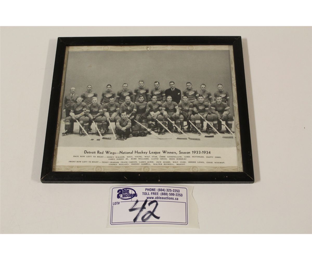 1934-35 CCM BROWN BORDER DETROIT RED WINGS FRAMED TEAM PICTURE