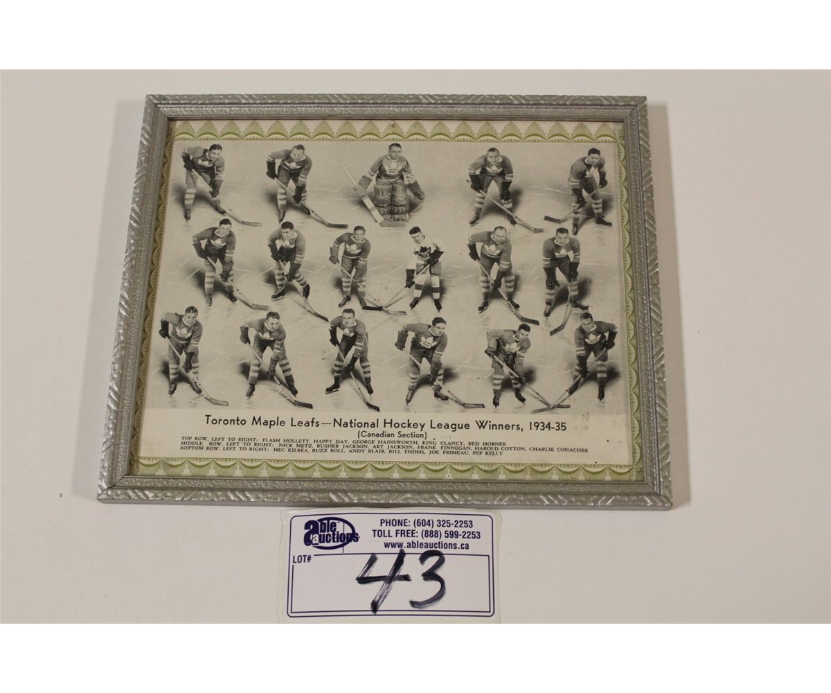 1934-35 CCM GREEN BORDER TORONTO MAPLE LEAFS FRAMED TEAM PICTURE