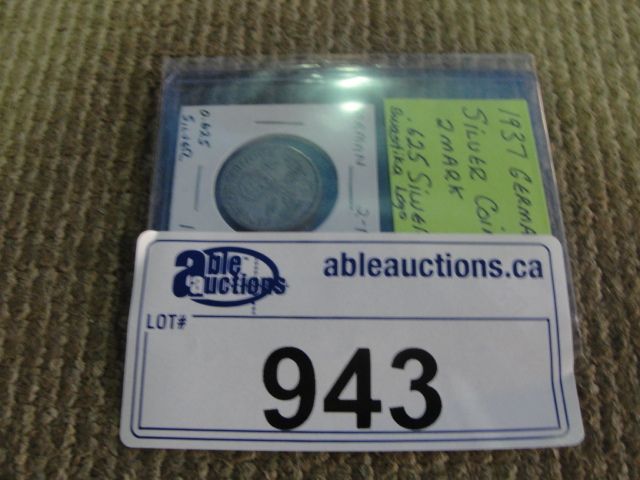 1937 GERMAN SILVER COIN 2 MARK SWASTIKA LOGO PRESENT