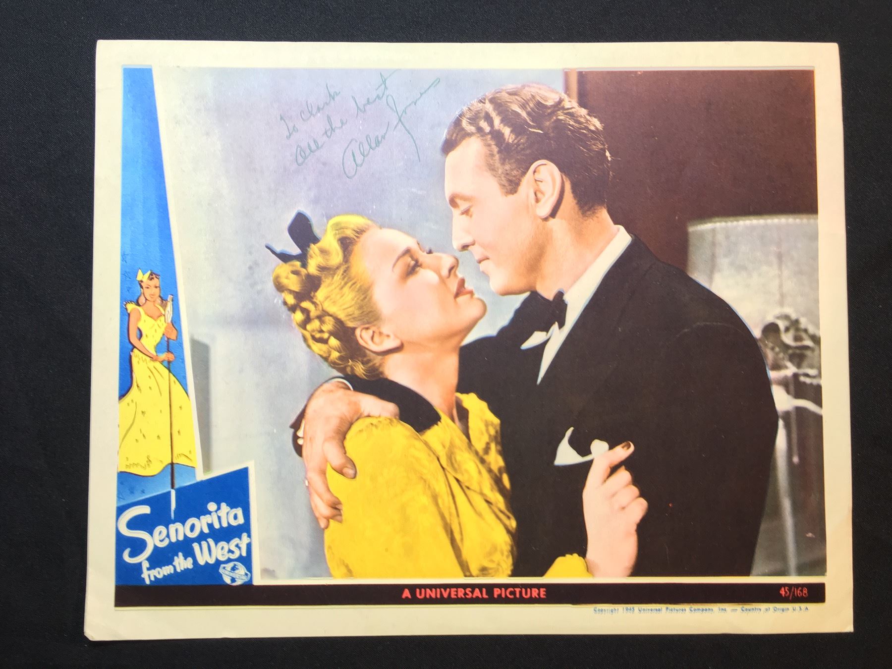 1945 "SENORITA FROM THE WEST" LOBBY SCENE CARD, SIGNED BY ALLAN JONES