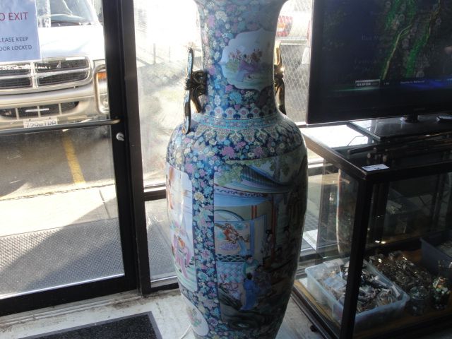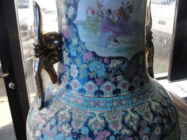 1950-60'S 5FT TALL ORIENTAL HAND PAINTED CERAMIC DECORATIVE FLOOR VASE