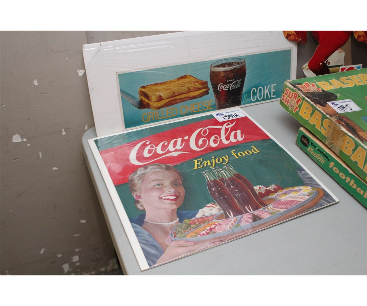 1950'S COCA-COLA PAPER SIGN AND 1960'S COKE DINNER SIGN-GRILLED CHEESE