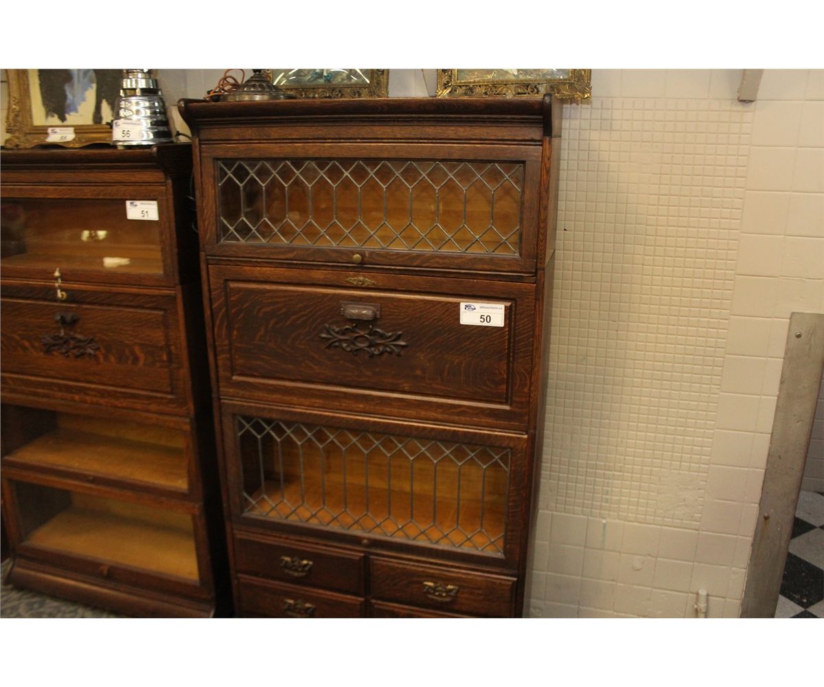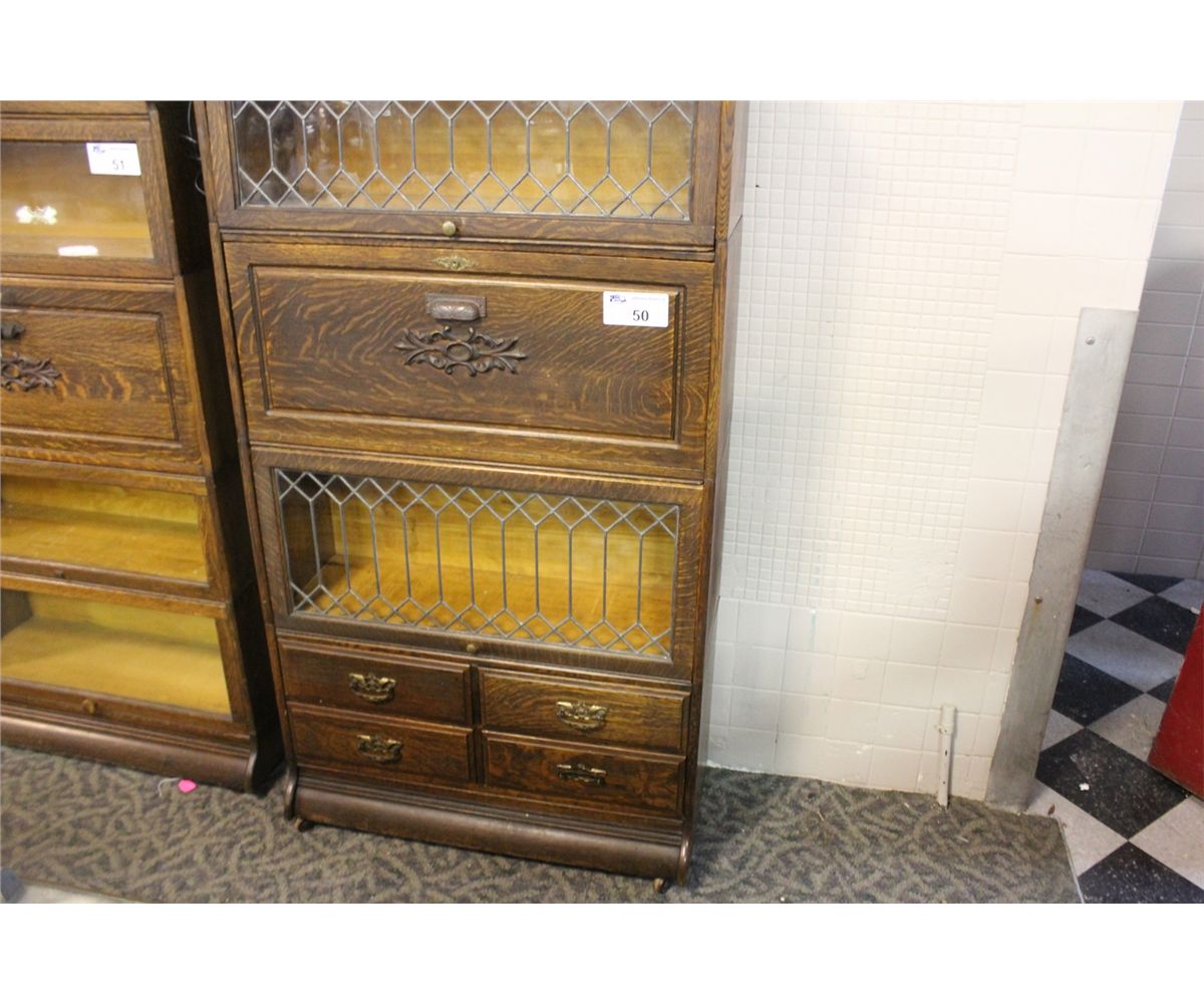 1950'S HIGH QUALITY QUARTER SAWN LEADED GLASS LAWYERS BOOKSHELF